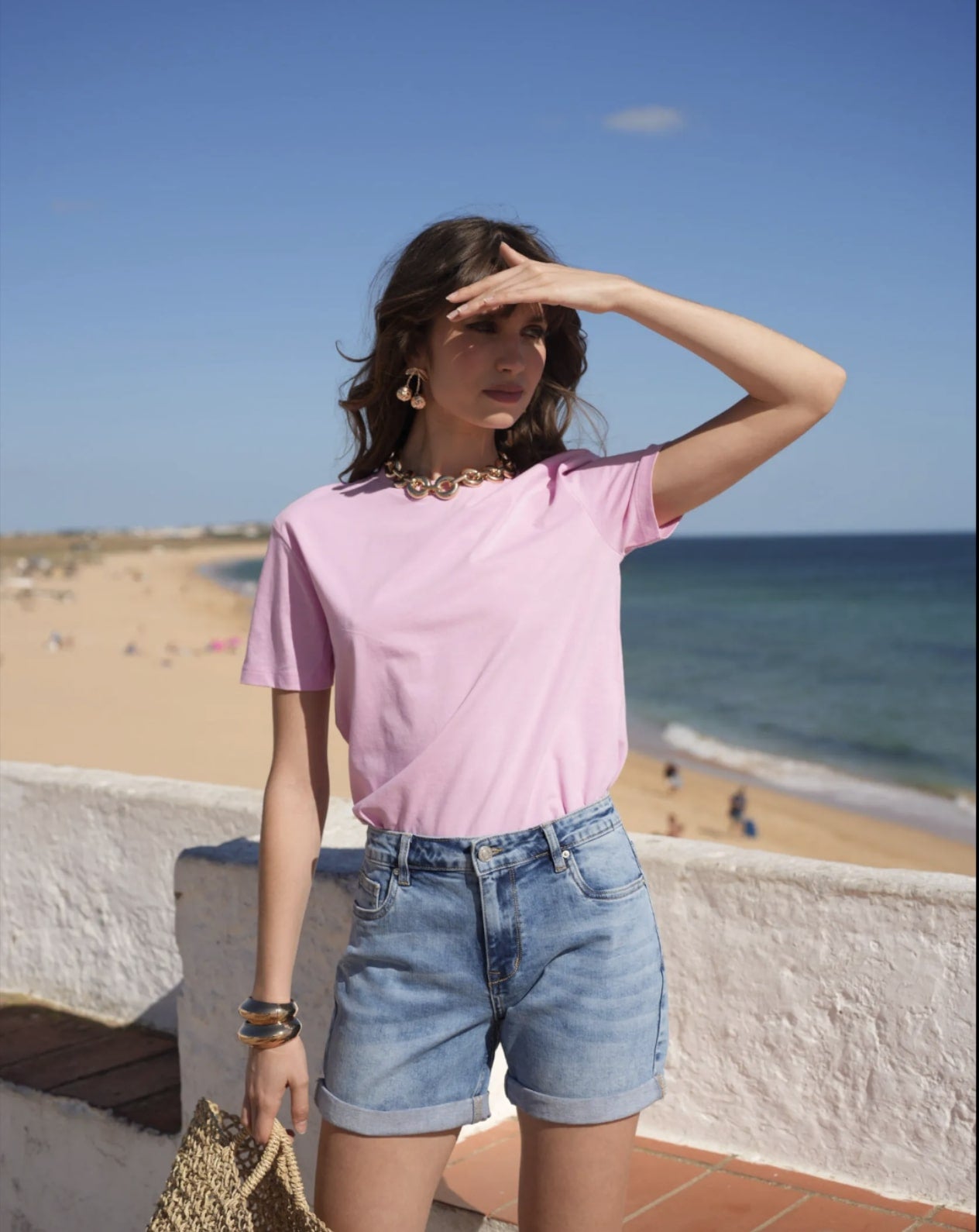 Short en denim au style casual et facile à porter, parfait pour les journées d’été ou les tenues décontractées. Sa coupe droite et son ourlet retroussé lui donnent un look simple et efficace.