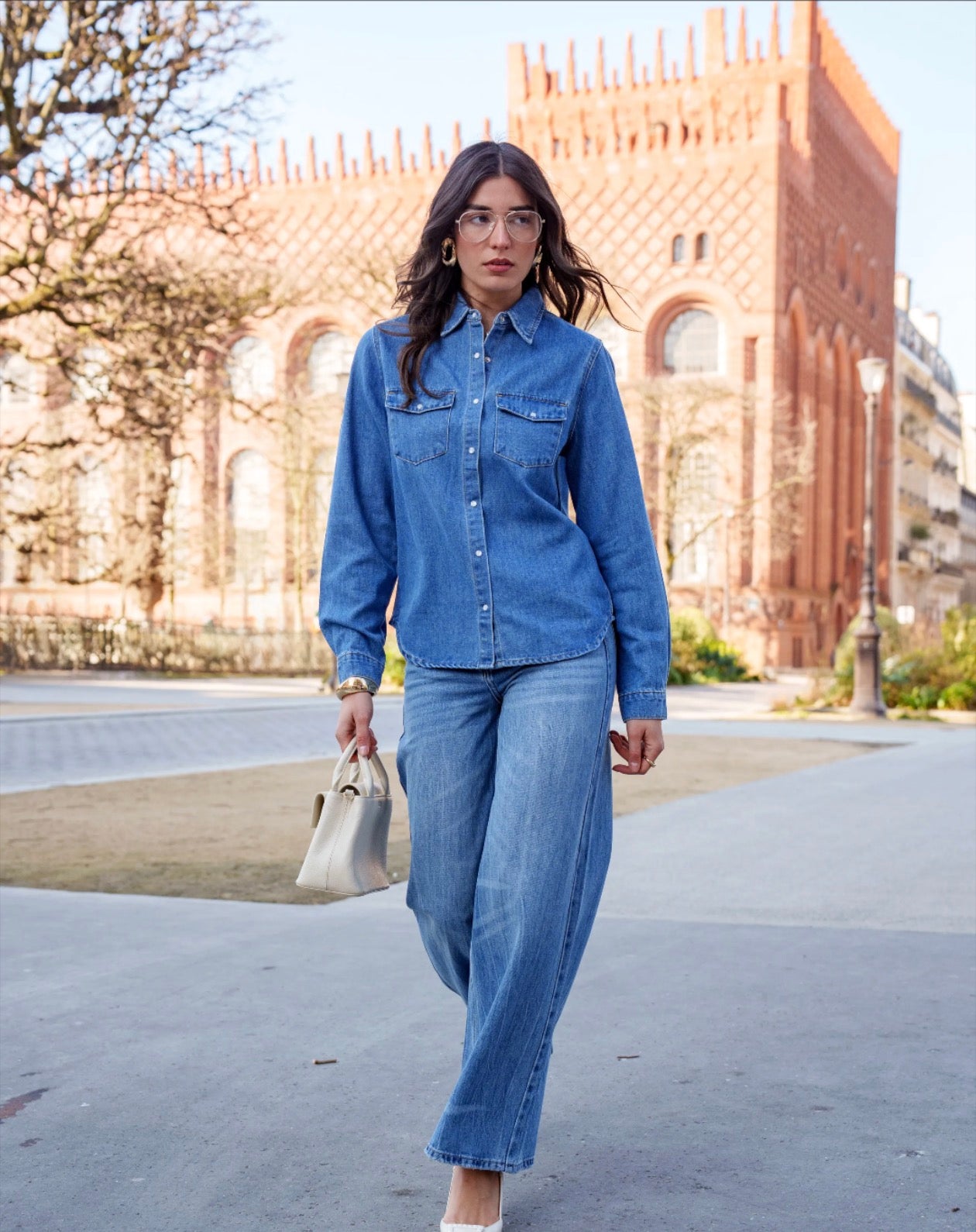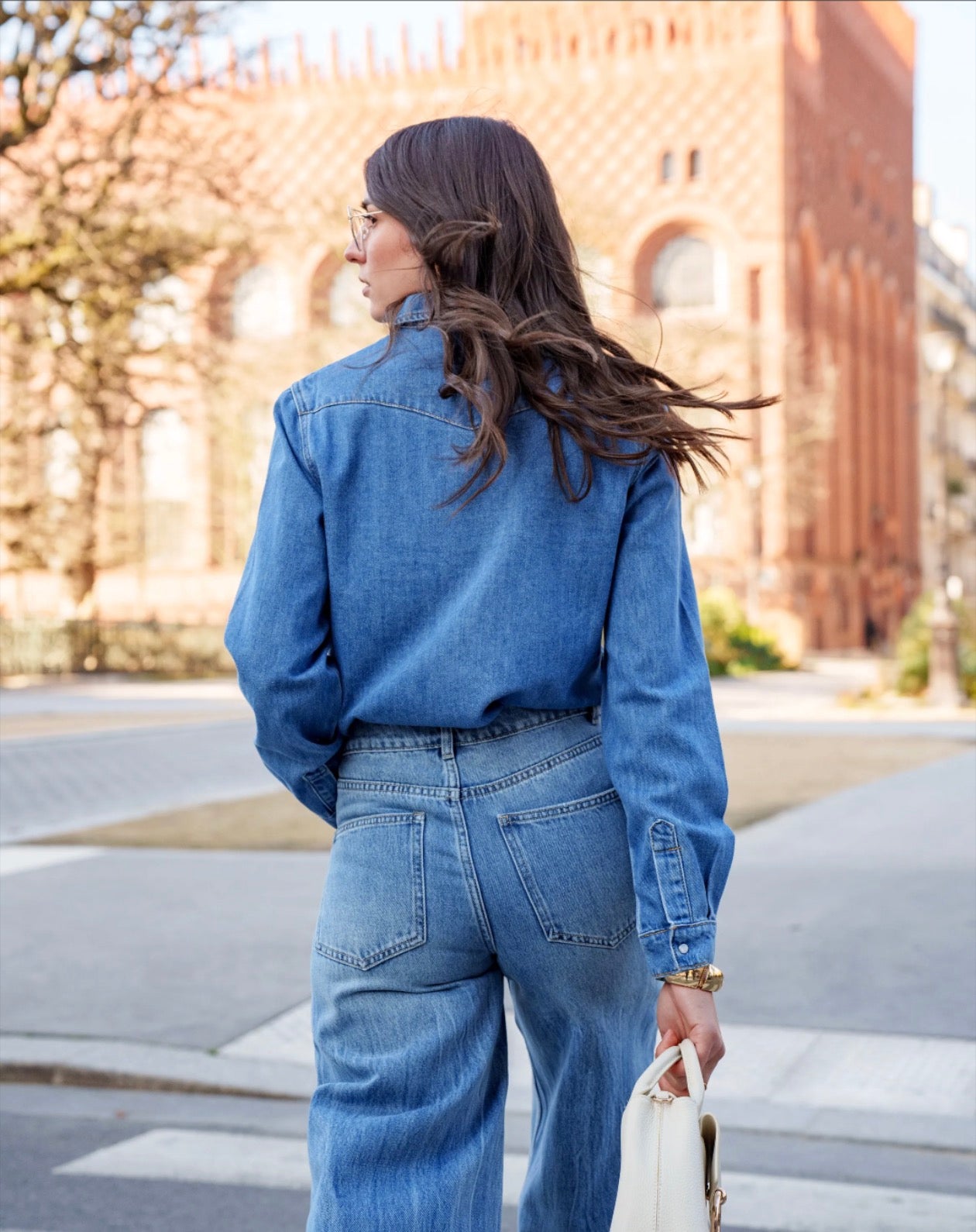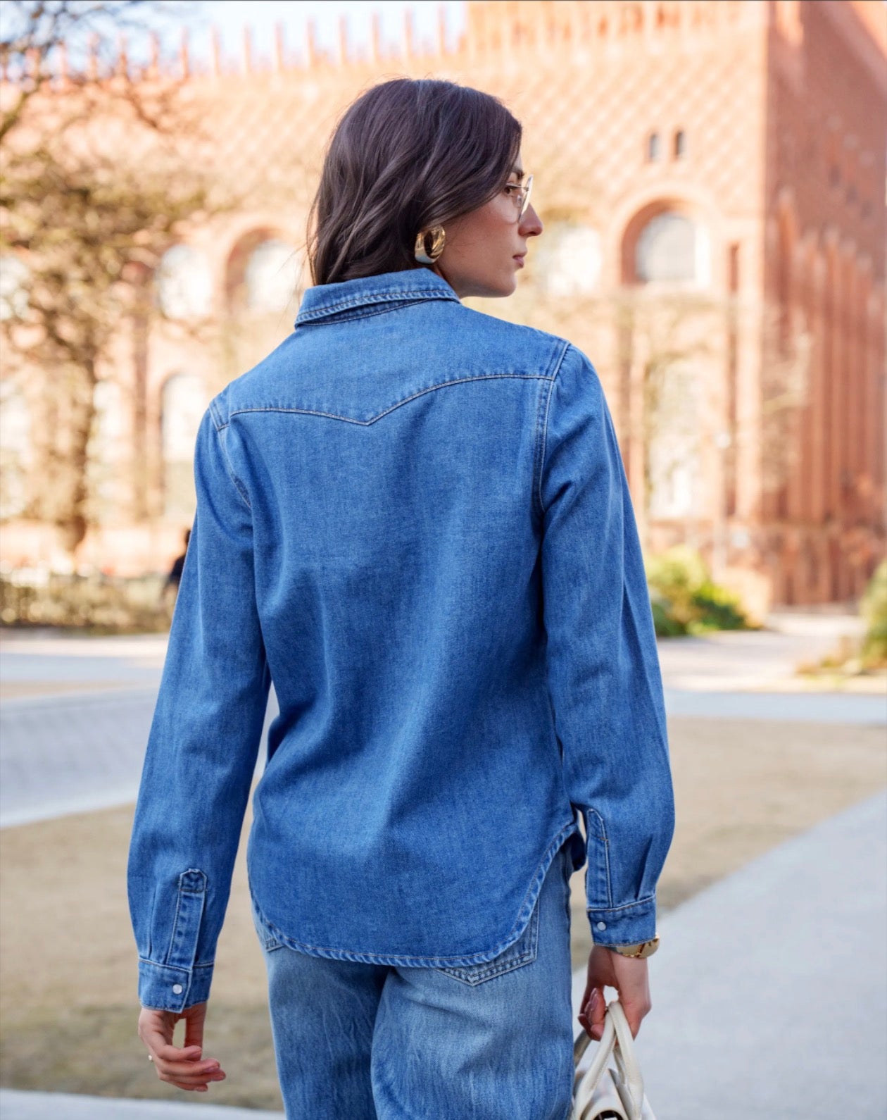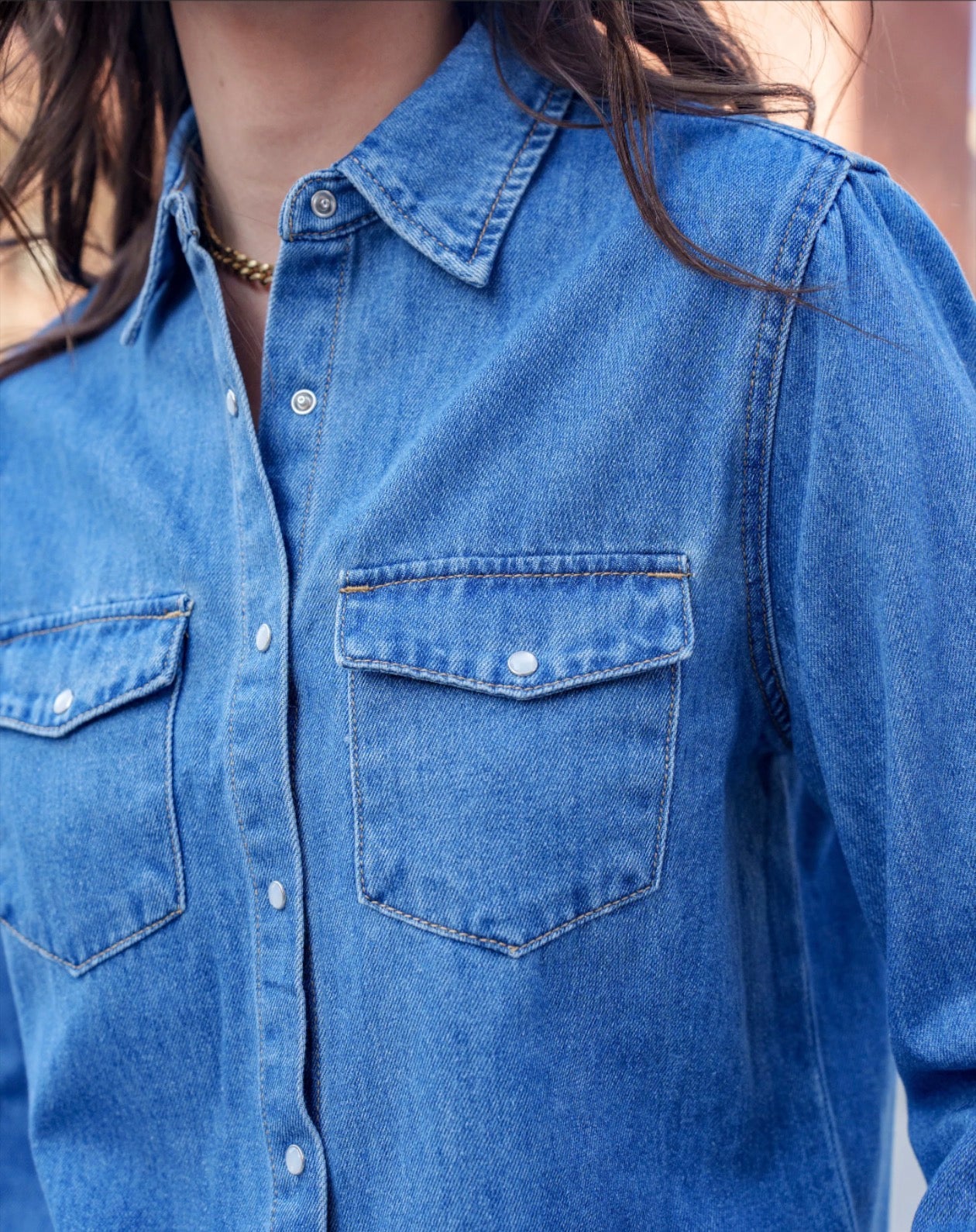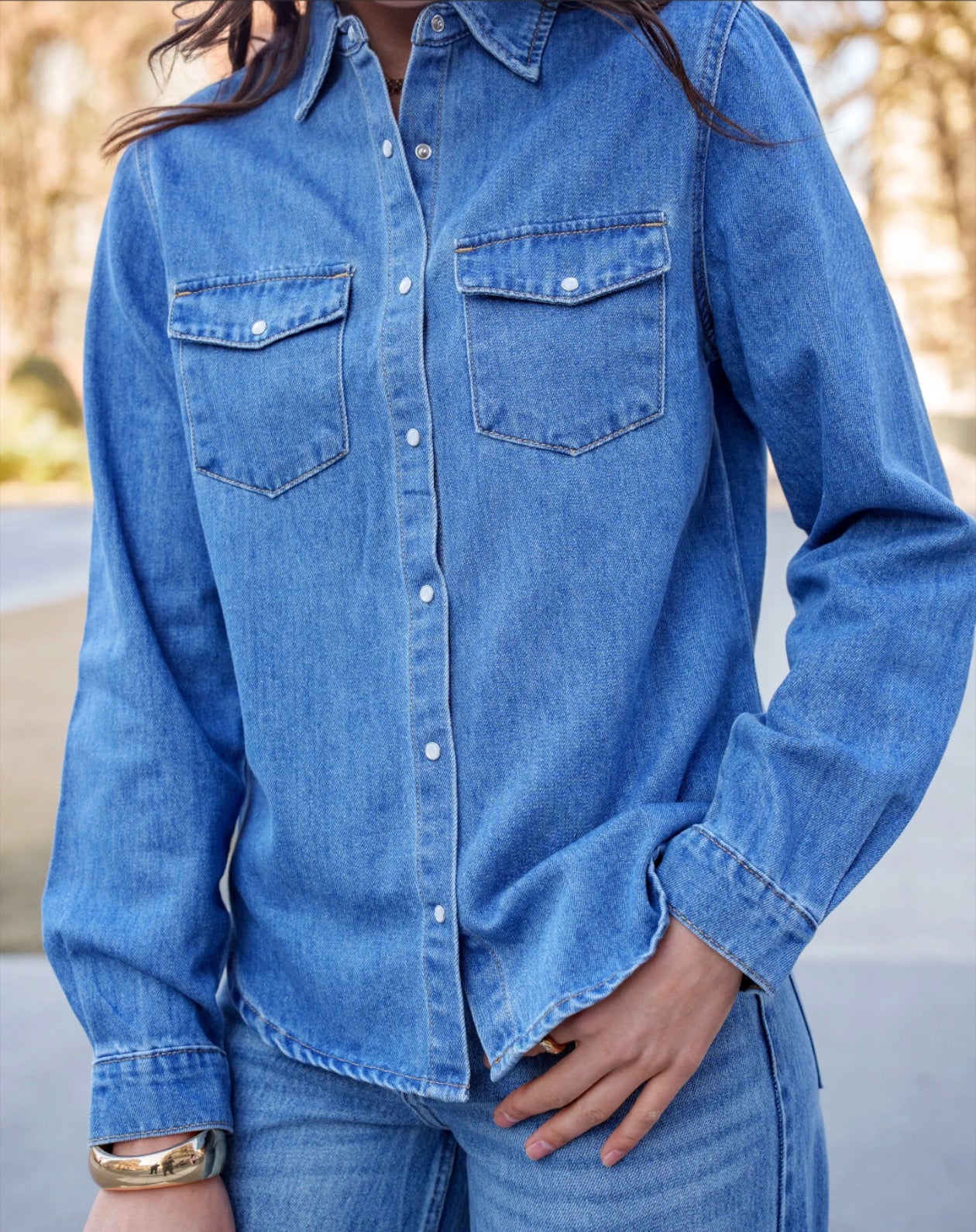 Chemise en denim bleu au style casual-chic, parfaite pour un look structuré et tendance.