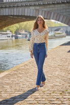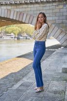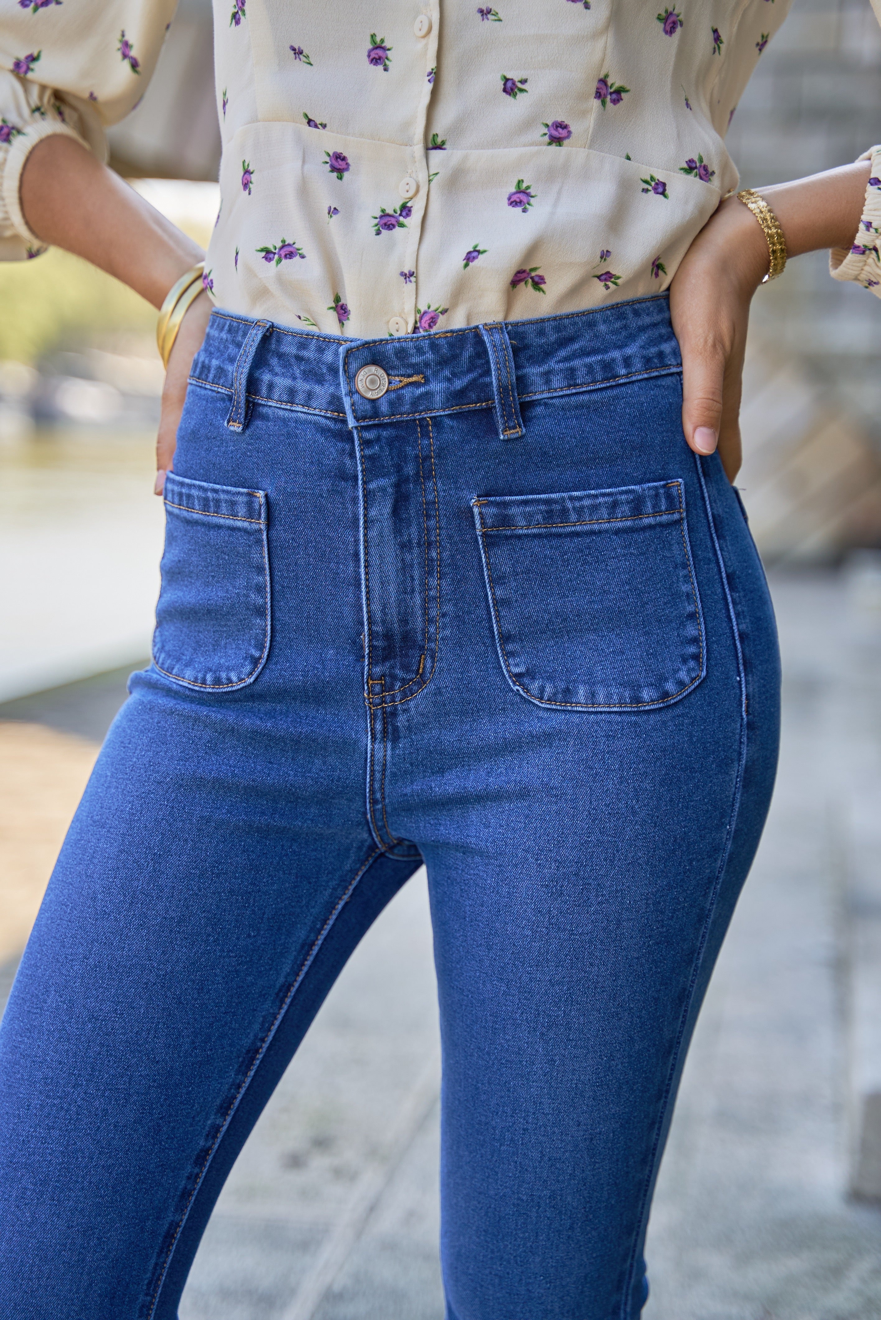 Ce jean flare revisite un classique du vestiaire féminin avec une touche rétro et une allure élégante. Sa coupe évasée à partir du genou allonge la jambe et structure la silhouette, tandis que ses grandes poches plaquées lui apportent un twist casual. Un indispensable facile à associer, parfait pour le quotidien.