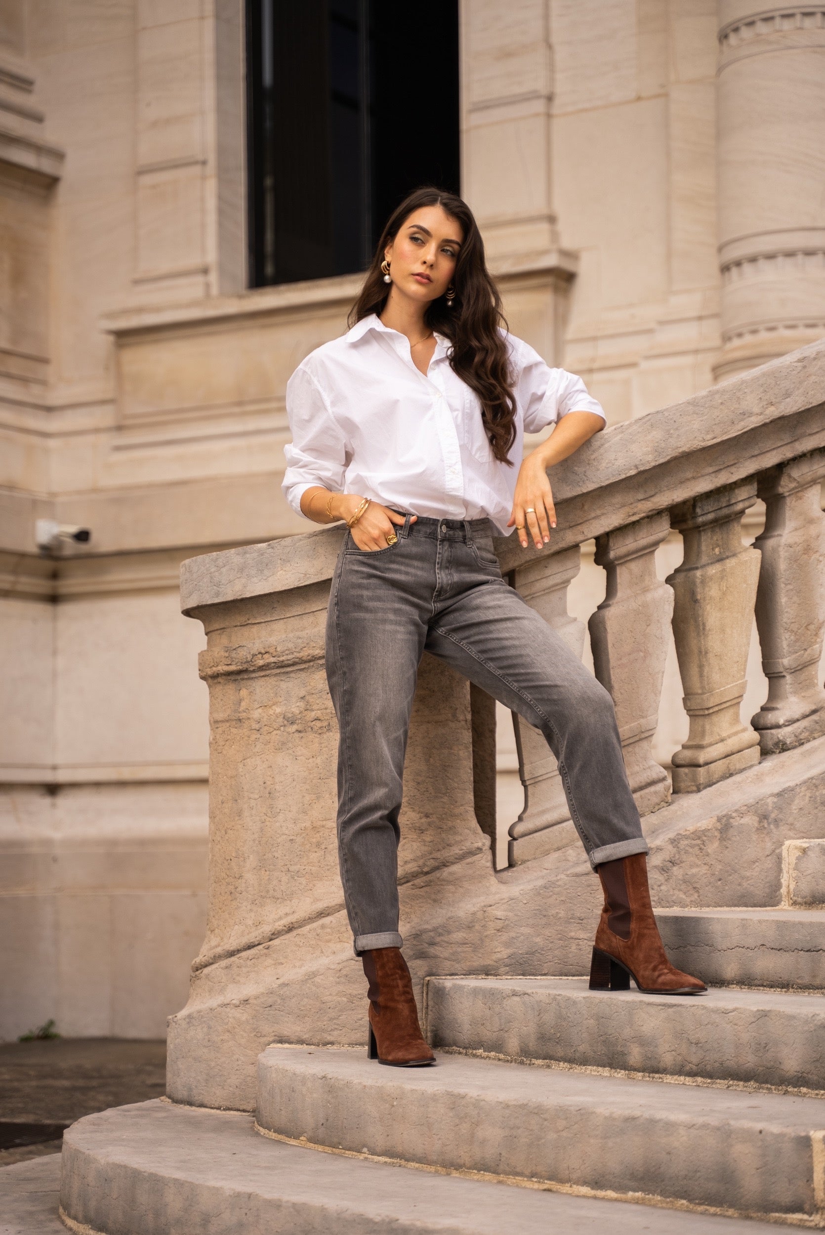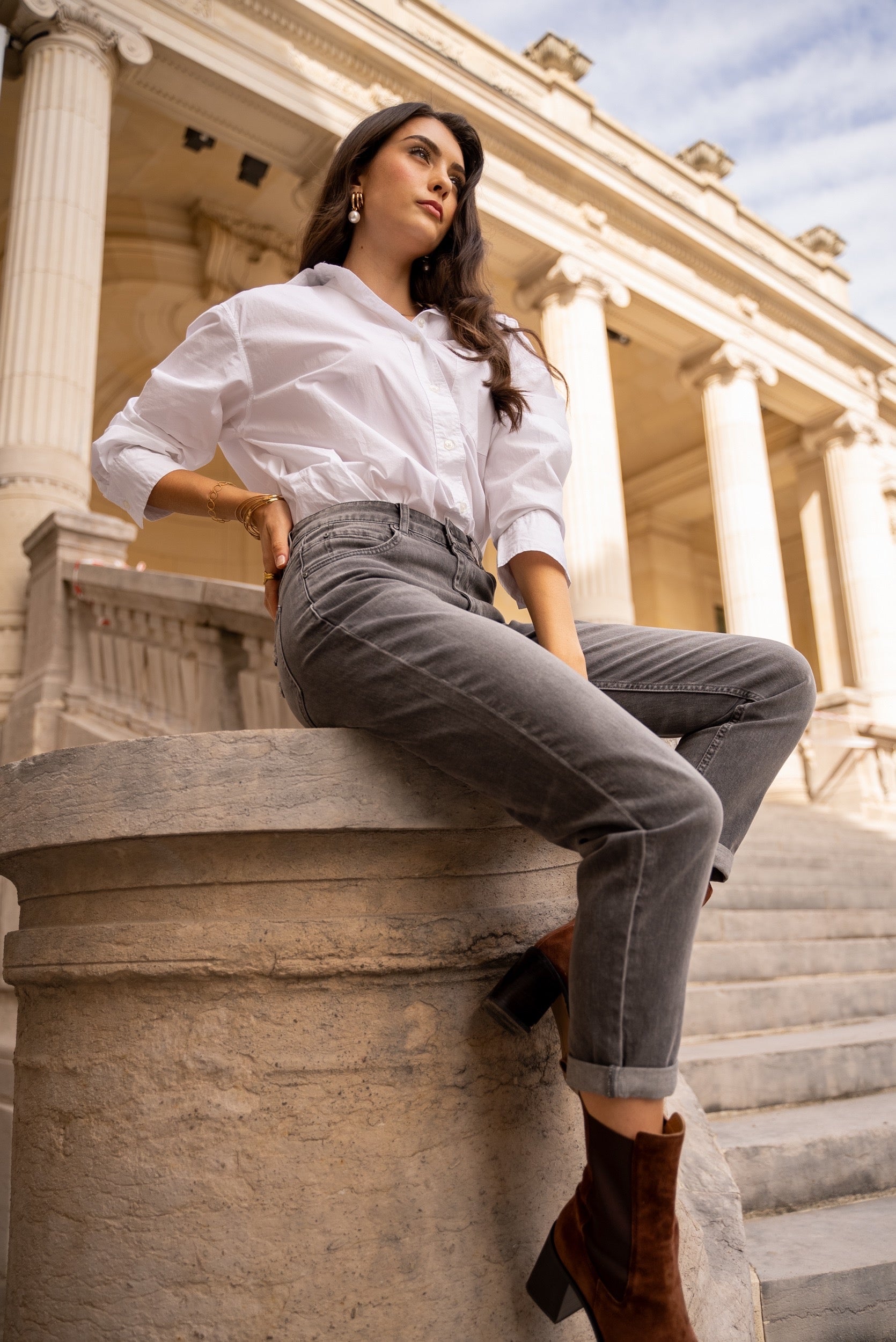Adoptez un look urbain et moderne avec ce jean relax gris à la coupe droite. Sa teinte légèrement délavée et son détail usé sur la poche arrière apportent une touche casual maîtrisée. Idéal pour toutes vos tenues du quotidien.