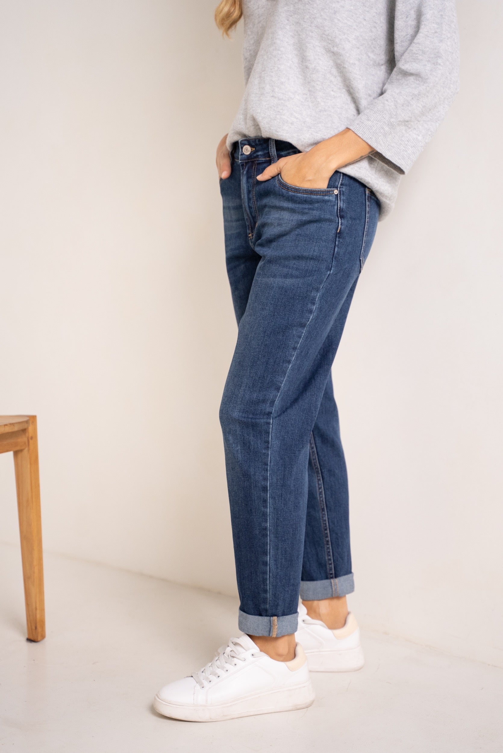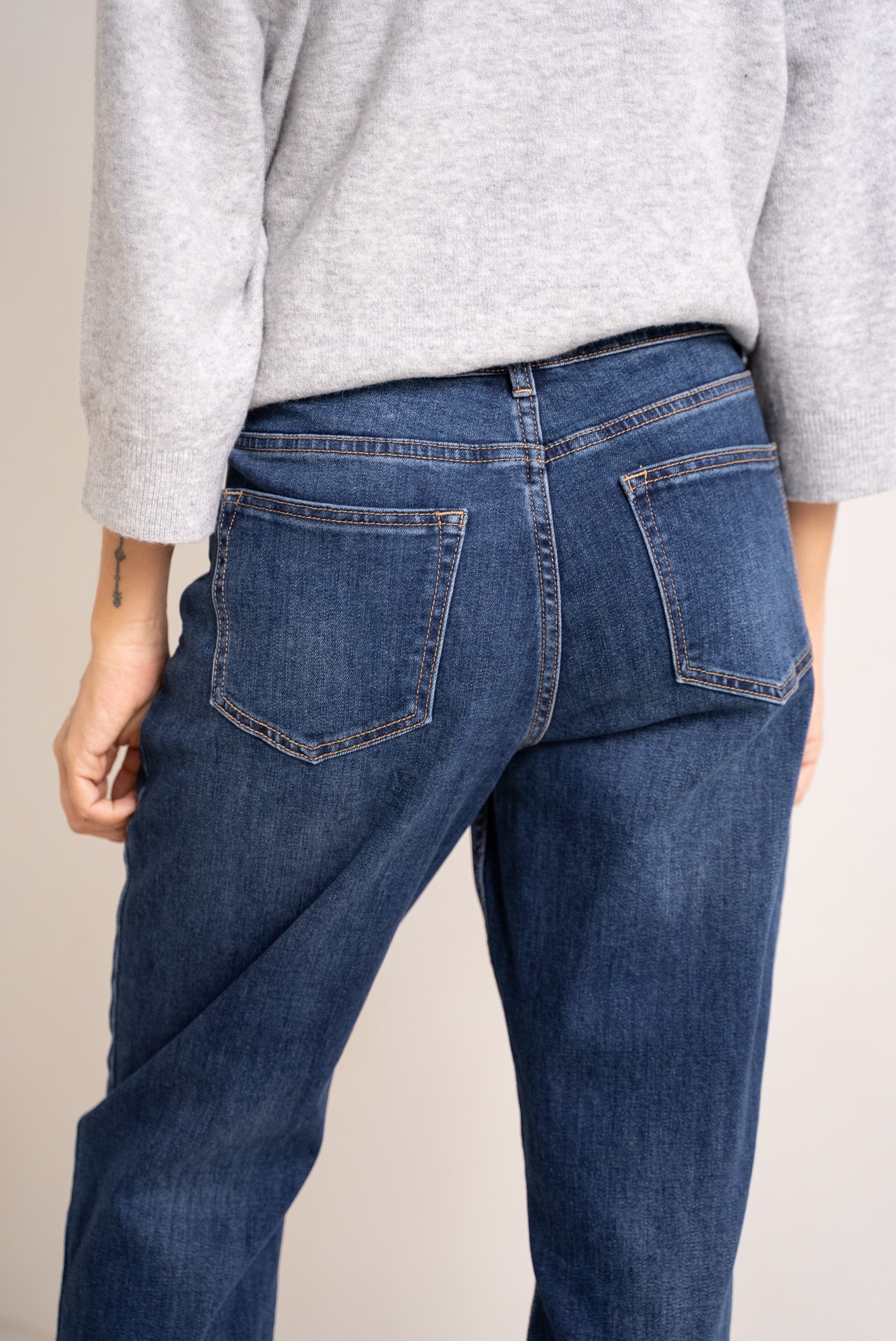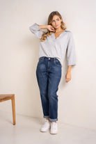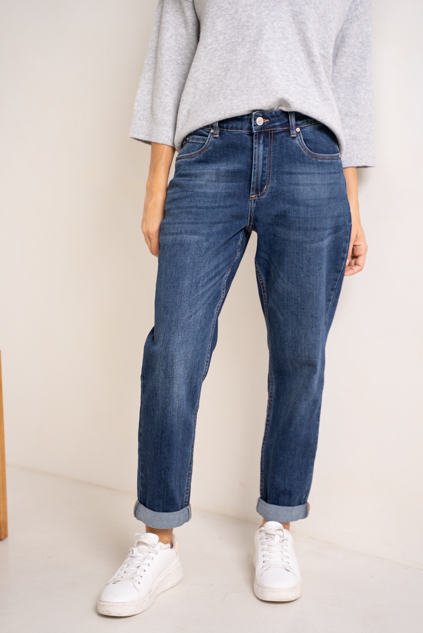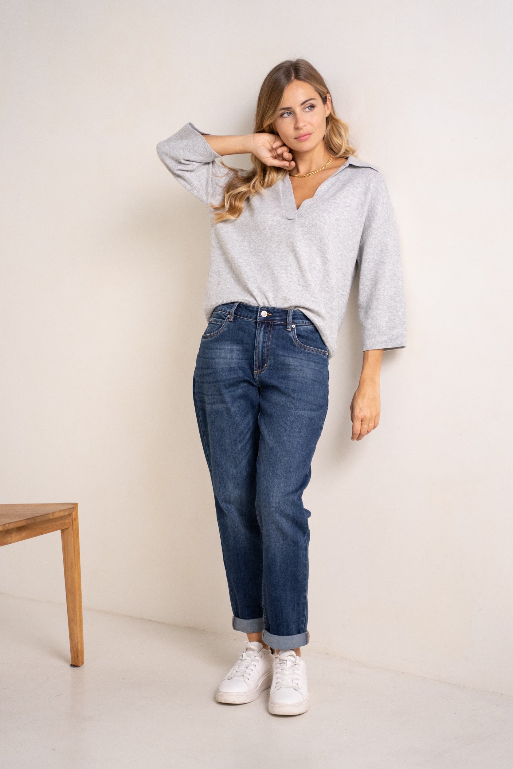 Ce jean relax offre un style décontracté sans compromis sur la coupe. Sa taille haute et sa jambe légèrement fuselée garantissent une silhouette confortable et flatteuse, idéale pour un look casual du quotidien.