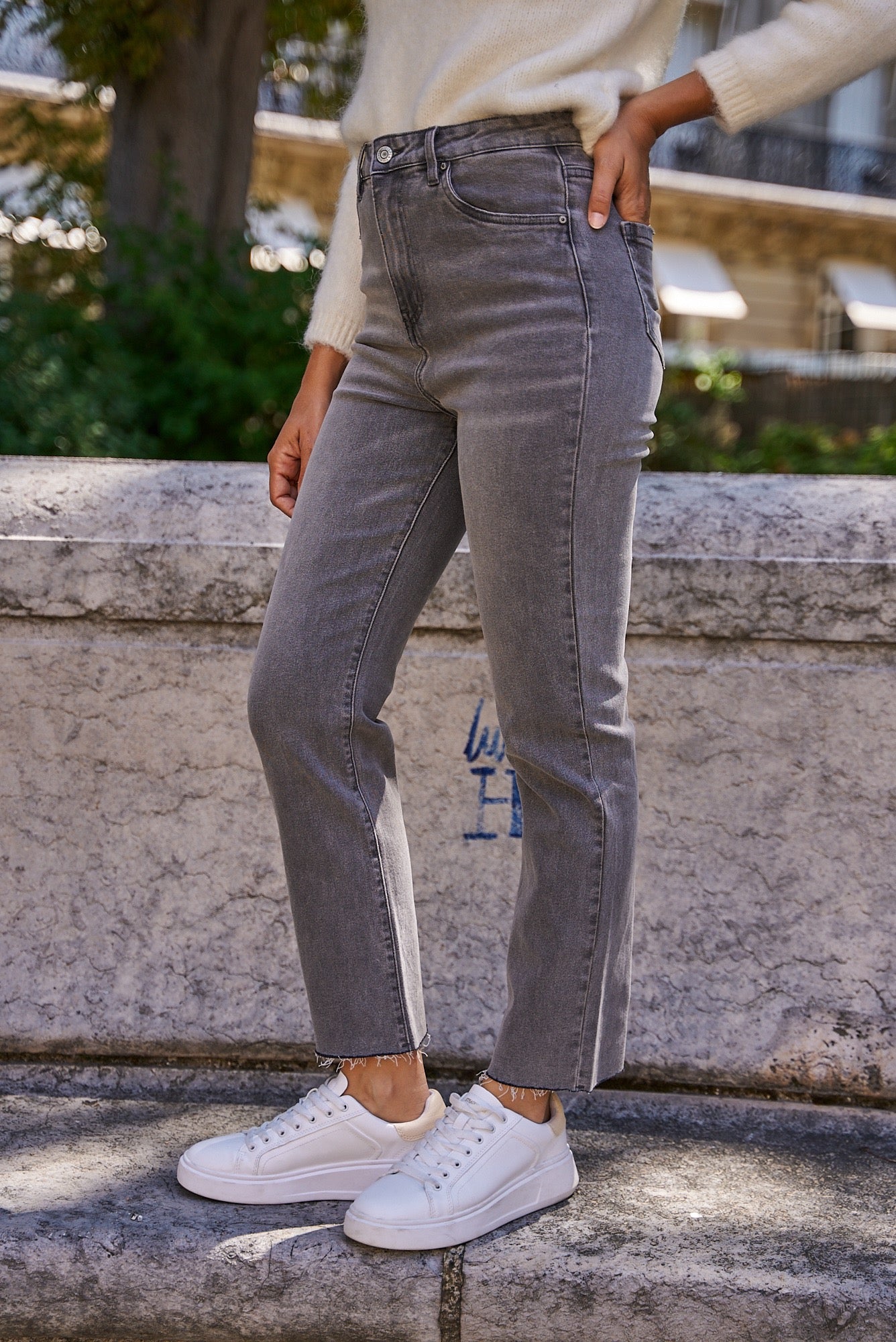 • Ourlet : Longueur cheville avec finition droite légèrement effilochée pour un effet naturel et moderne
