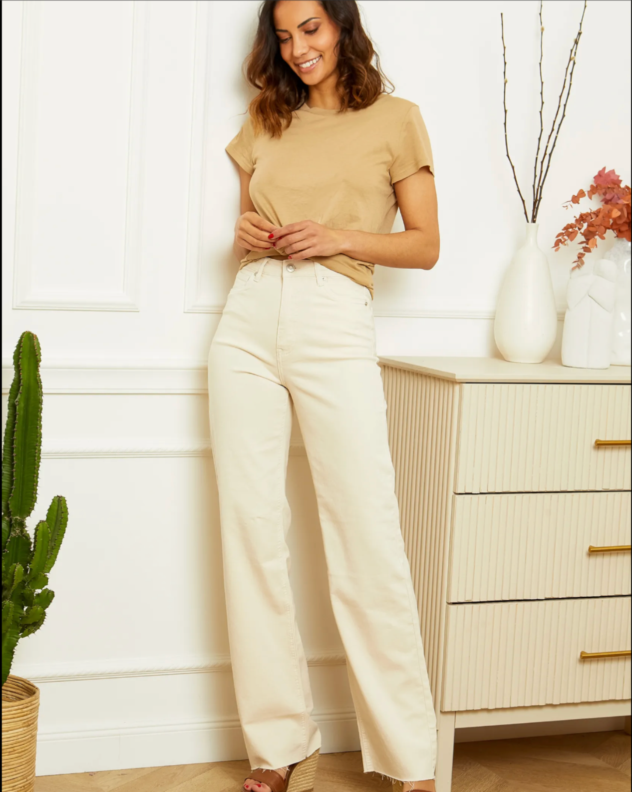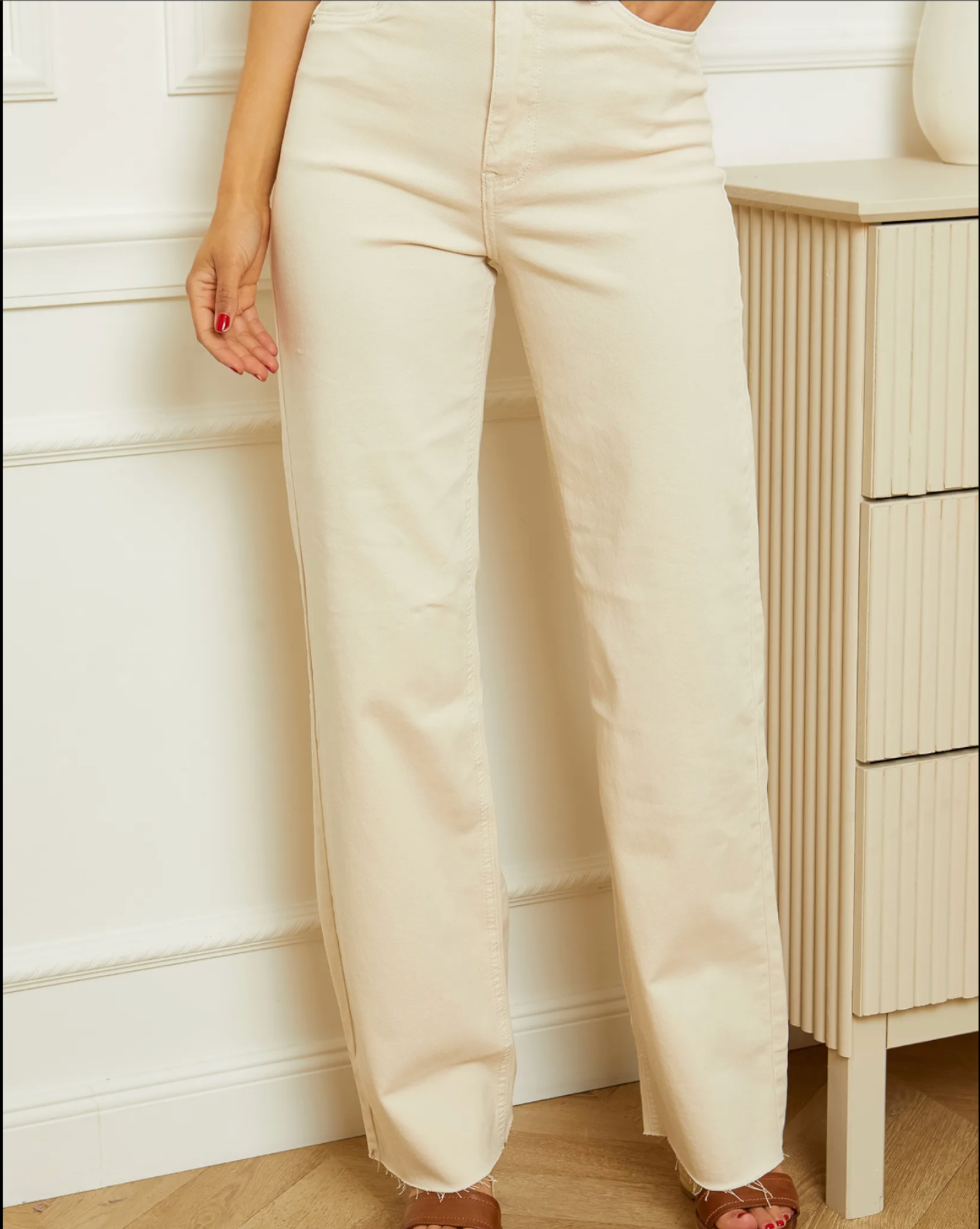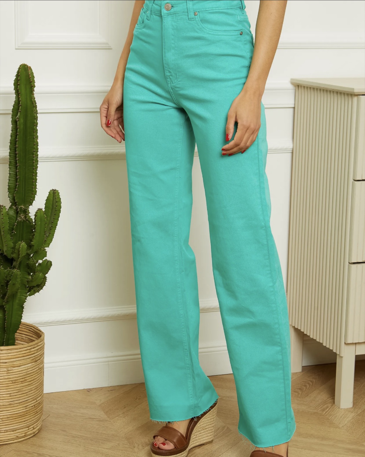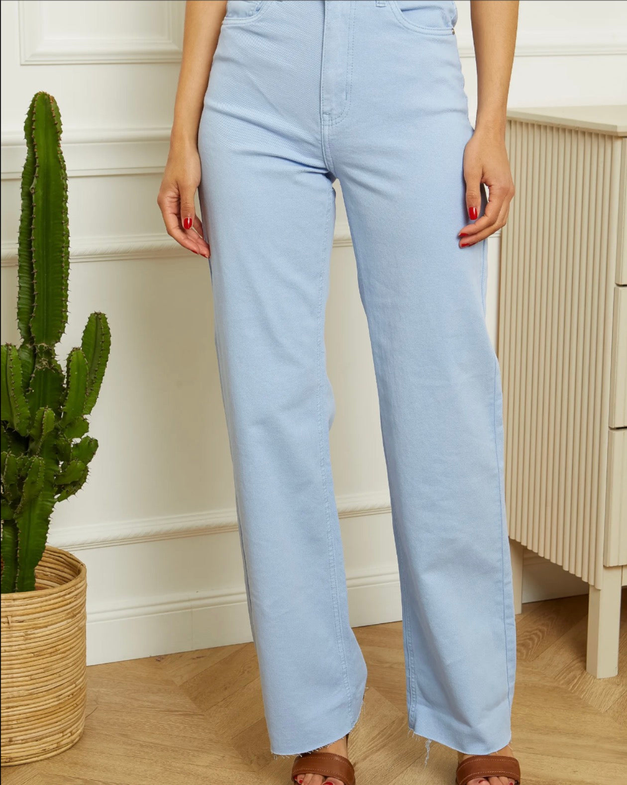 Ce jean large à la coupe aérienne incarne une allure à la fois féminine et moderne. Sa teinte bleu ciel lumineuse en fait un choix parfait pour les beaux jours, tout en assurant confort et élégance.