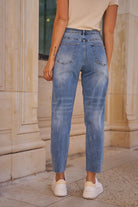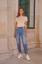 Coupe : Mom fit, ajusté à la taille et légèrement ample sur la jambe