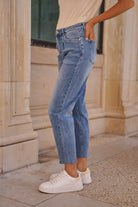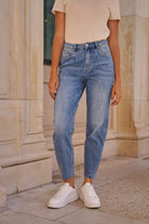 Le Jean Clara incarne le parfait équilibre entre style rétro et confort moderne. Sa coupe mom flatte la silhouette en marquant la taille et en offrant une jambe légèrement fuselée. Idéal pour un look effortless, il se porte aussi bien avec des baskets que des talons.