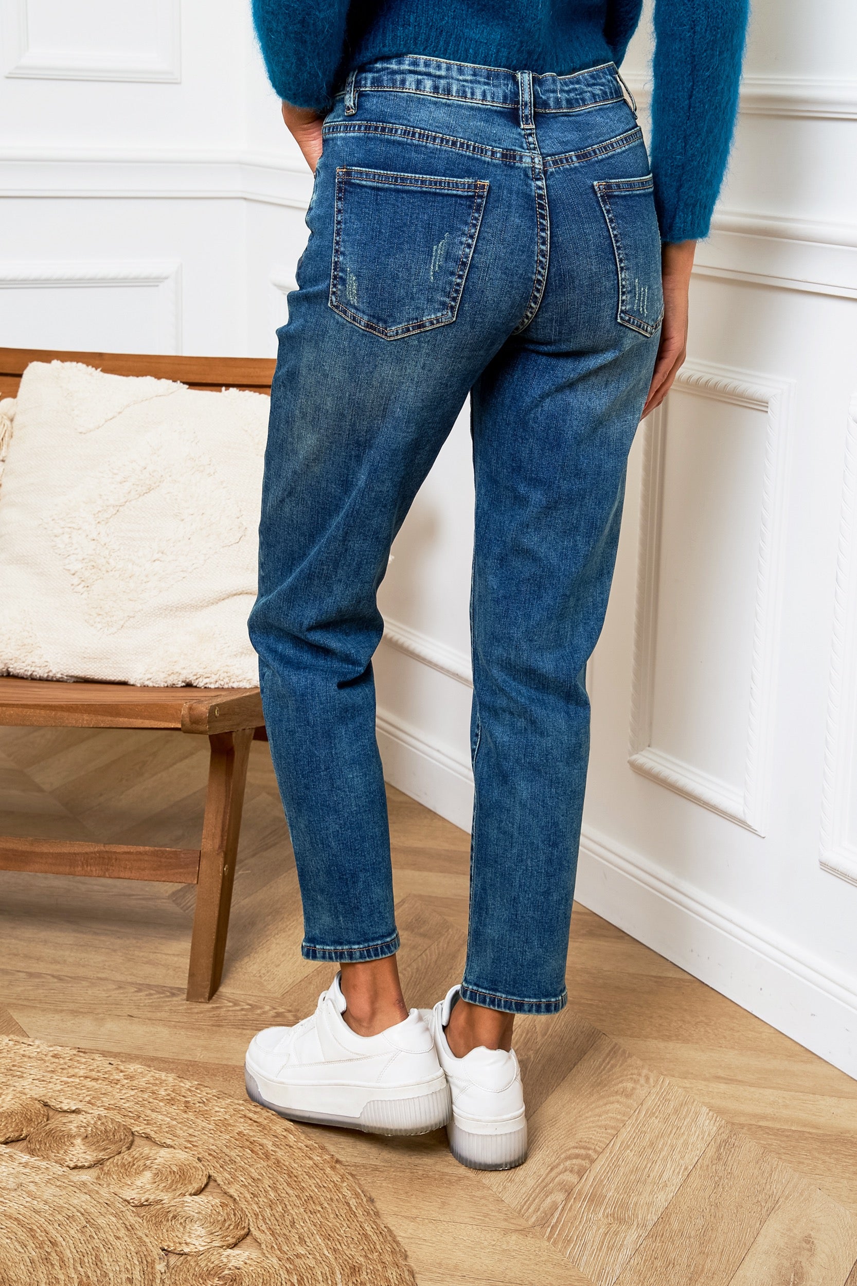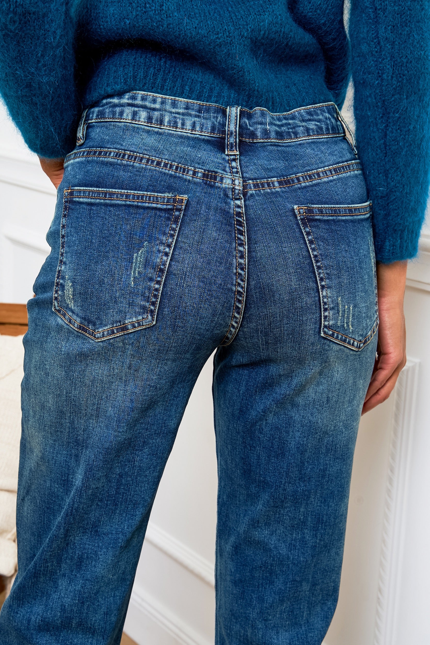 Un jean à l’allure vintage et décontractée, parfait pour une silhouette structurée tout en confort. Son effet légèrement usé apporte une touche authentique et tendance.