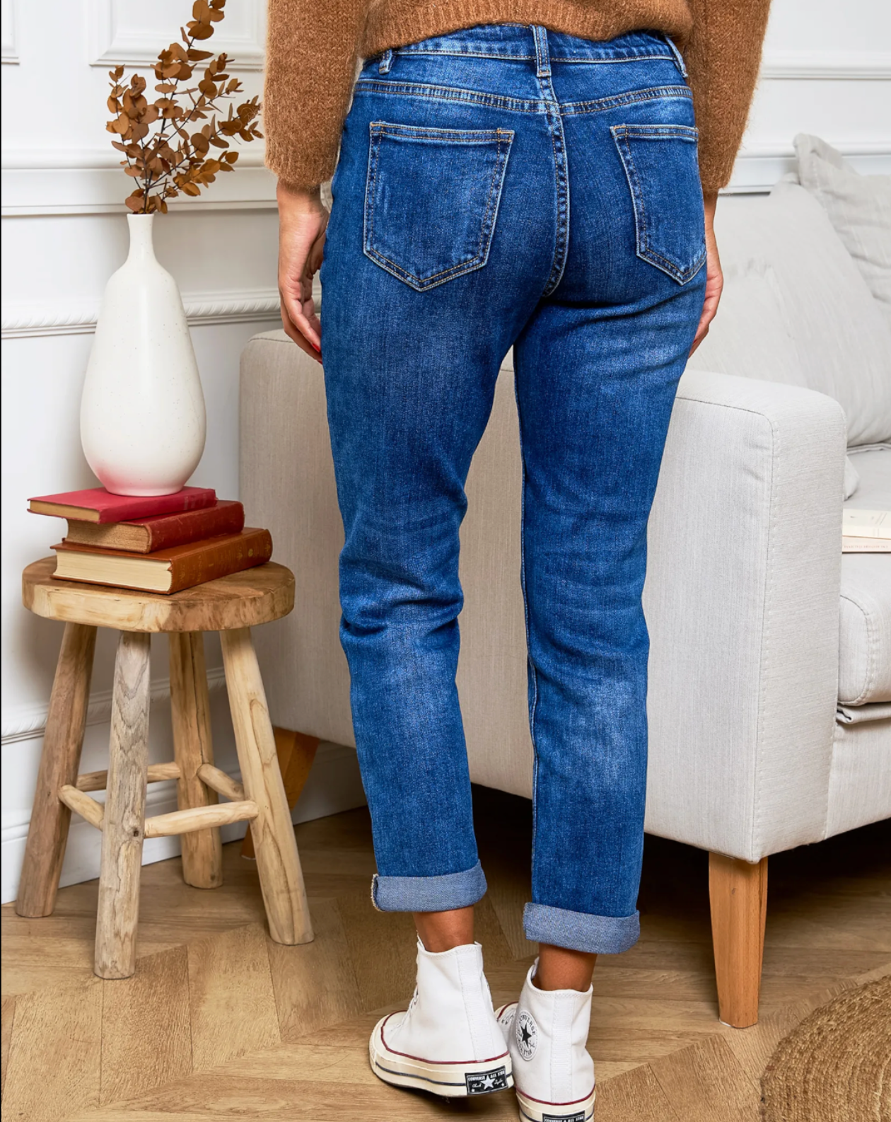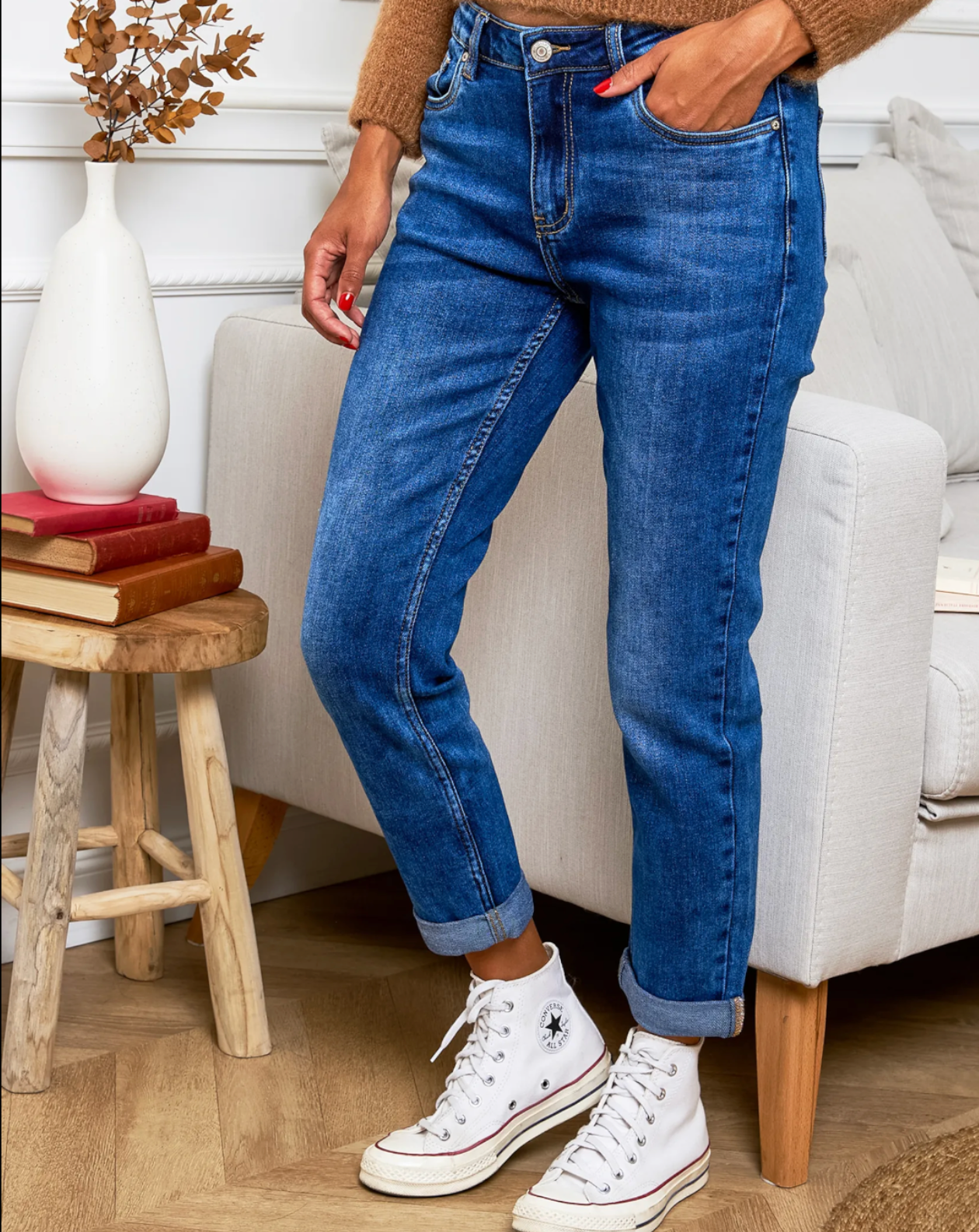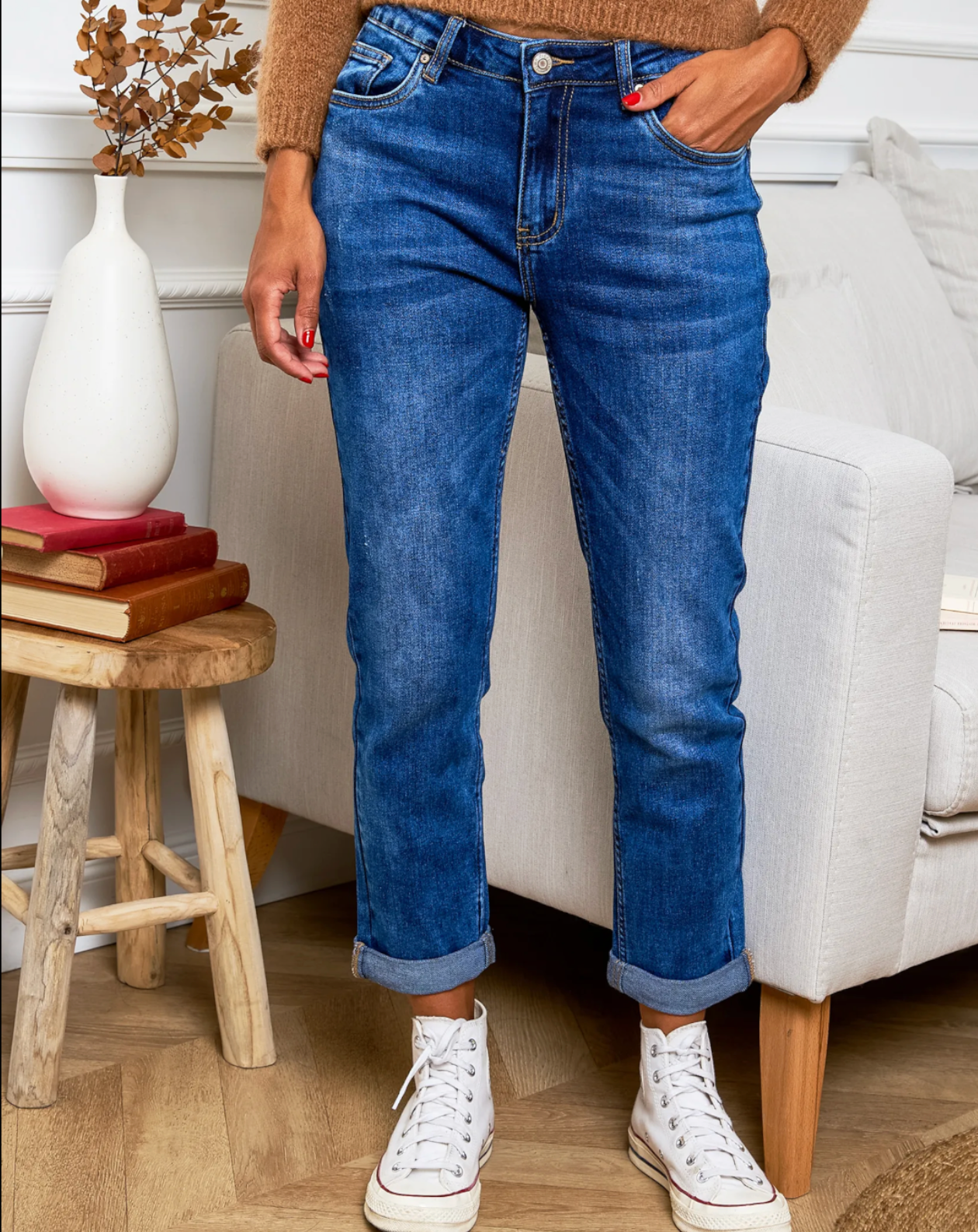 Ourlet : Longueur cheville avec revers cousu