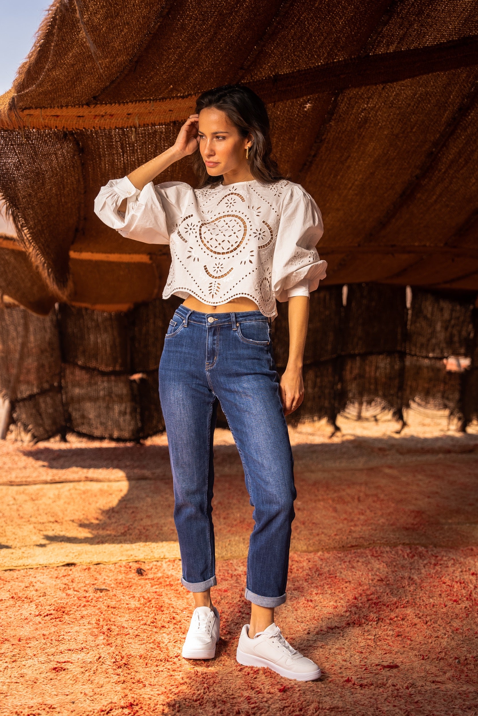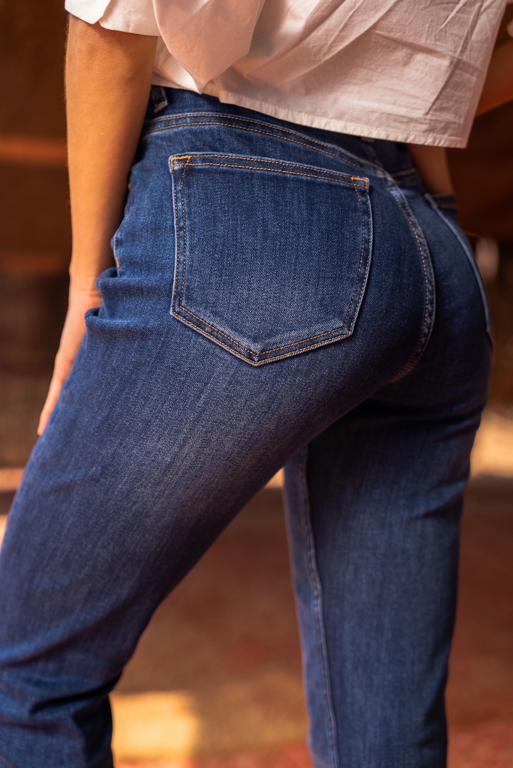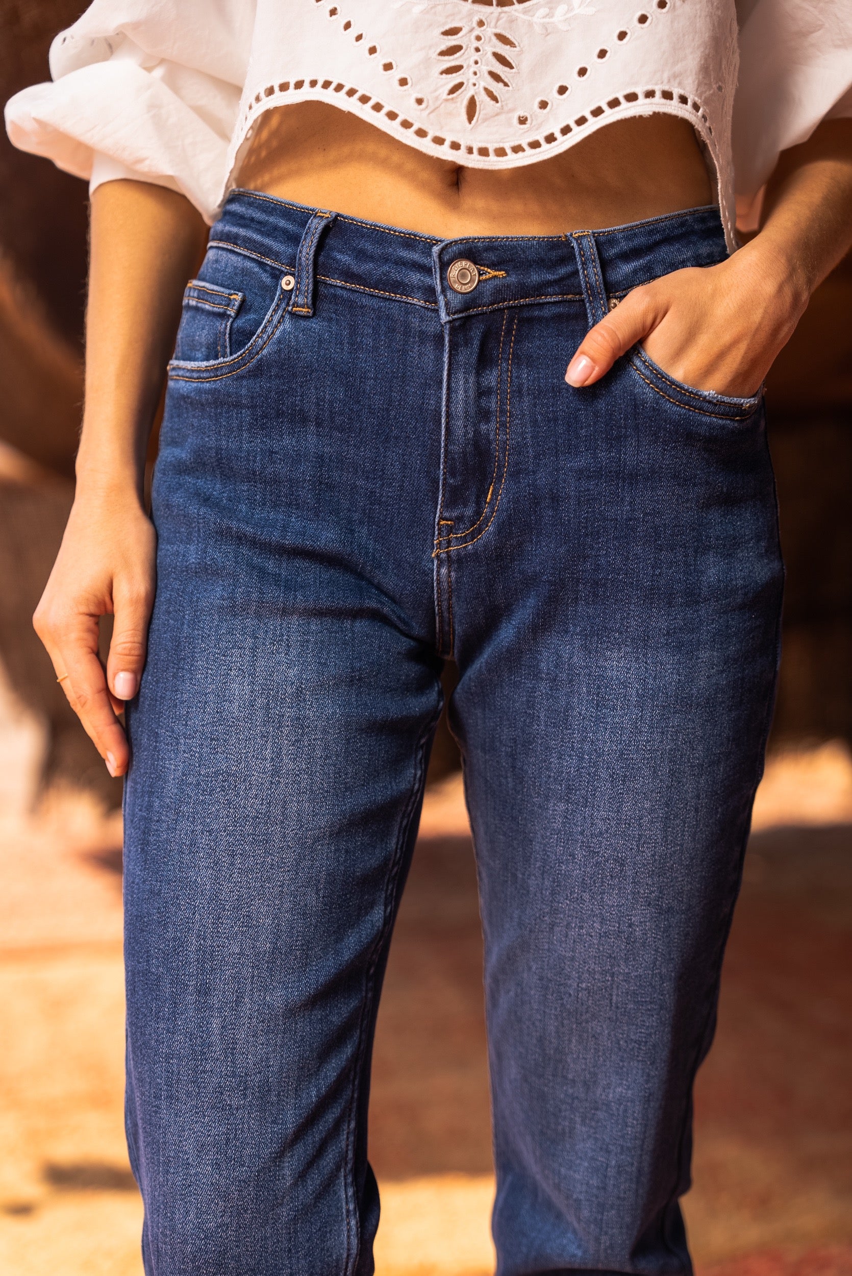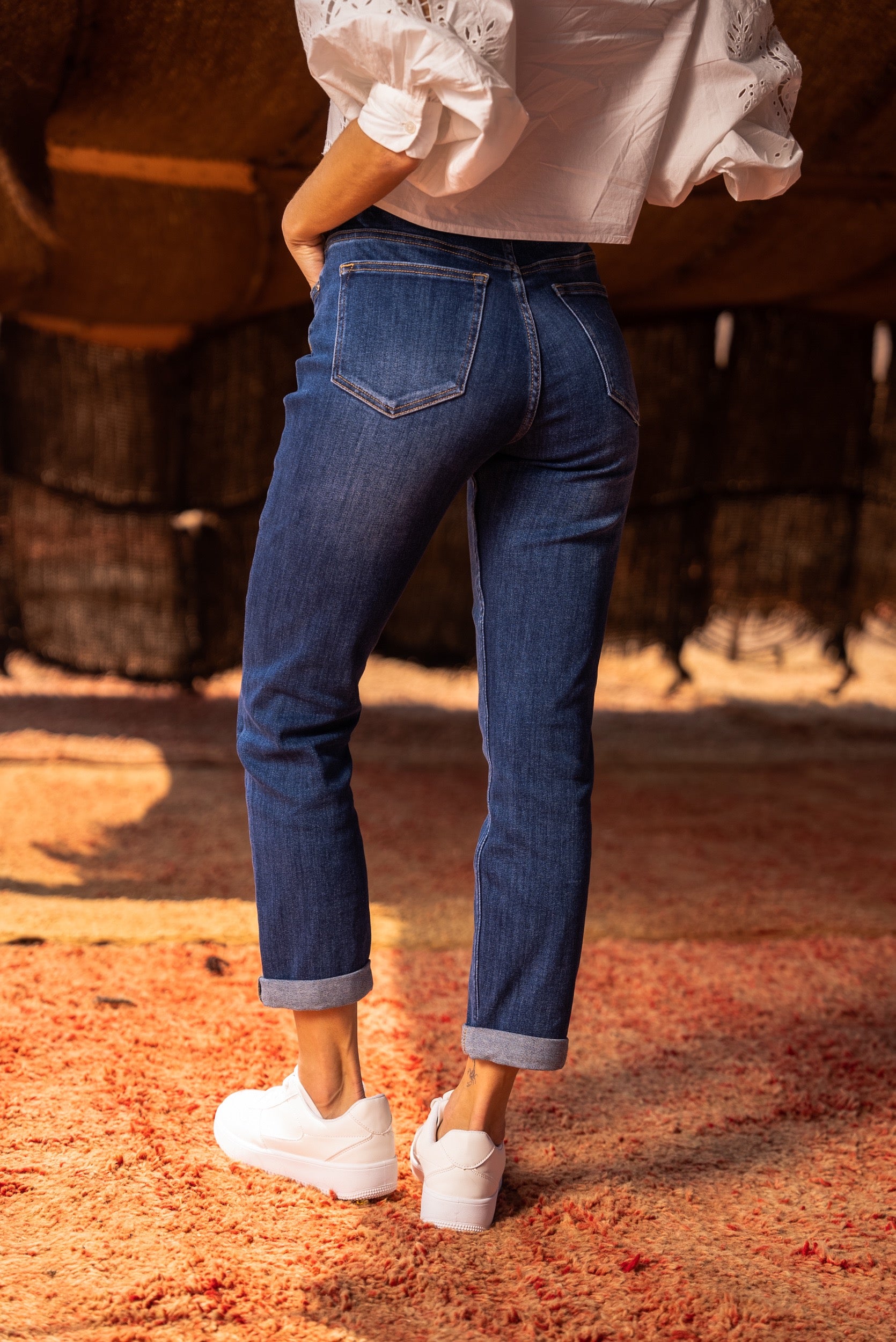 Un jean droit intemporel et confortable.