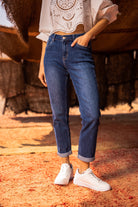 Avec sa taille haute et sa coupe droite légèrement fuselée, ce modèle offre un tombé naturel et flatteur. Son denim brutavec léger stretch assure maintien et liberté de mouvement. Le revers visible ajoute une touche moderne et casual.