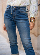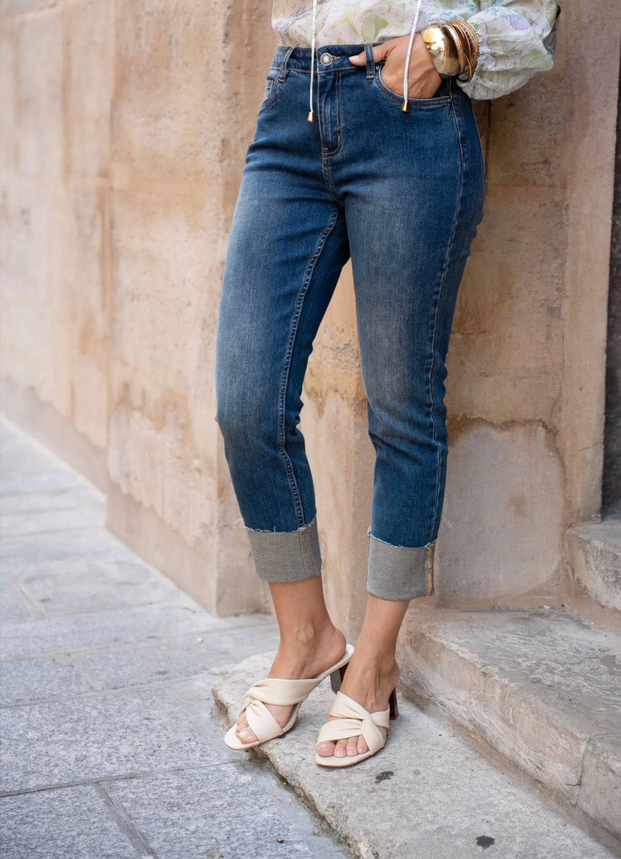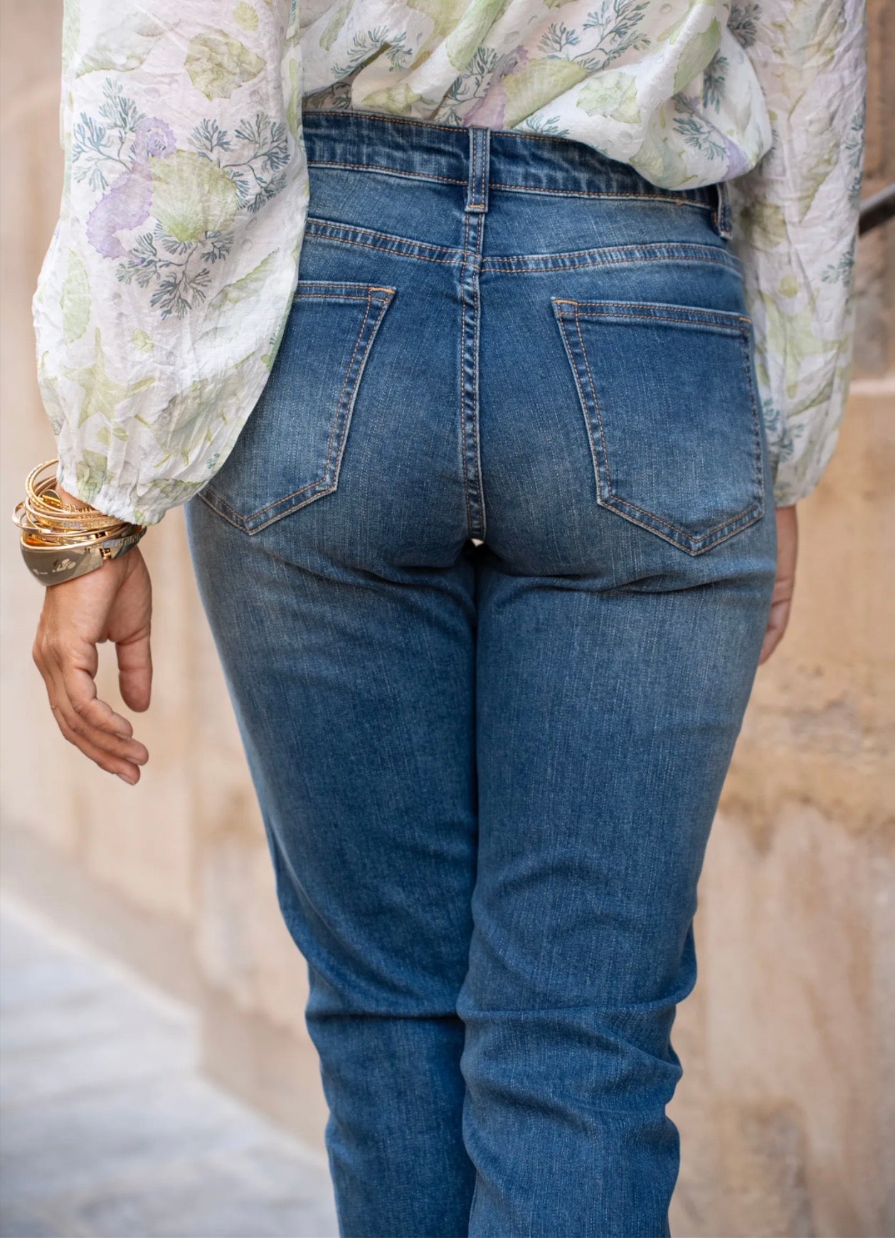 Jean à la coupe droite et confortable, parfait pour un look casual-chic du quotidien. Son denim bleu moyen subtilement délavé lui donne un esprit authentique, facile à associer en toute saison.