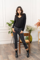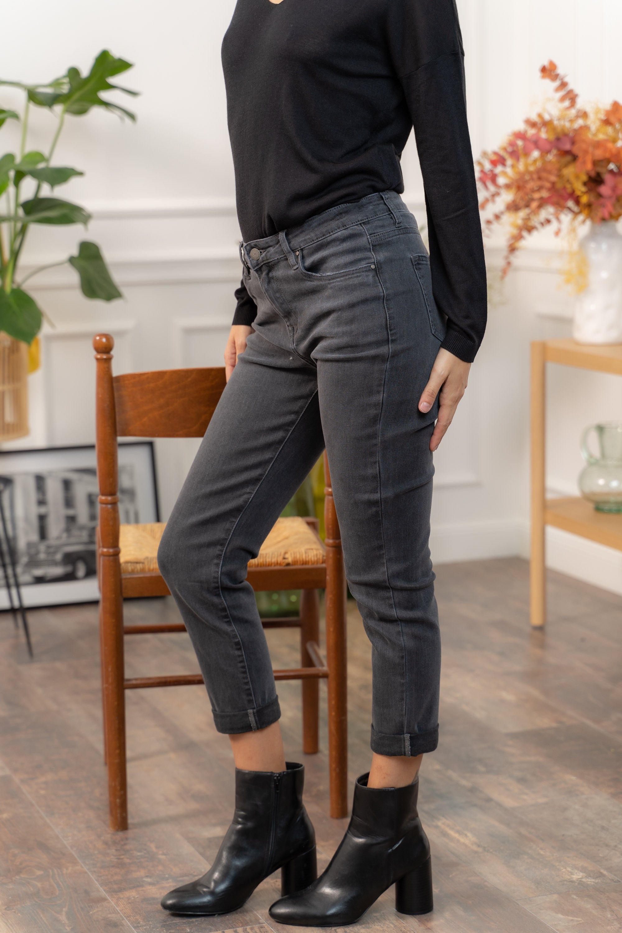 Jean relax en denim gris foncé, à la coupe droite légèrement ample, pensé pour allier style et confort. Sa taille haute souligne la silhouette tout en assurant un maintien agréable au quotidien.