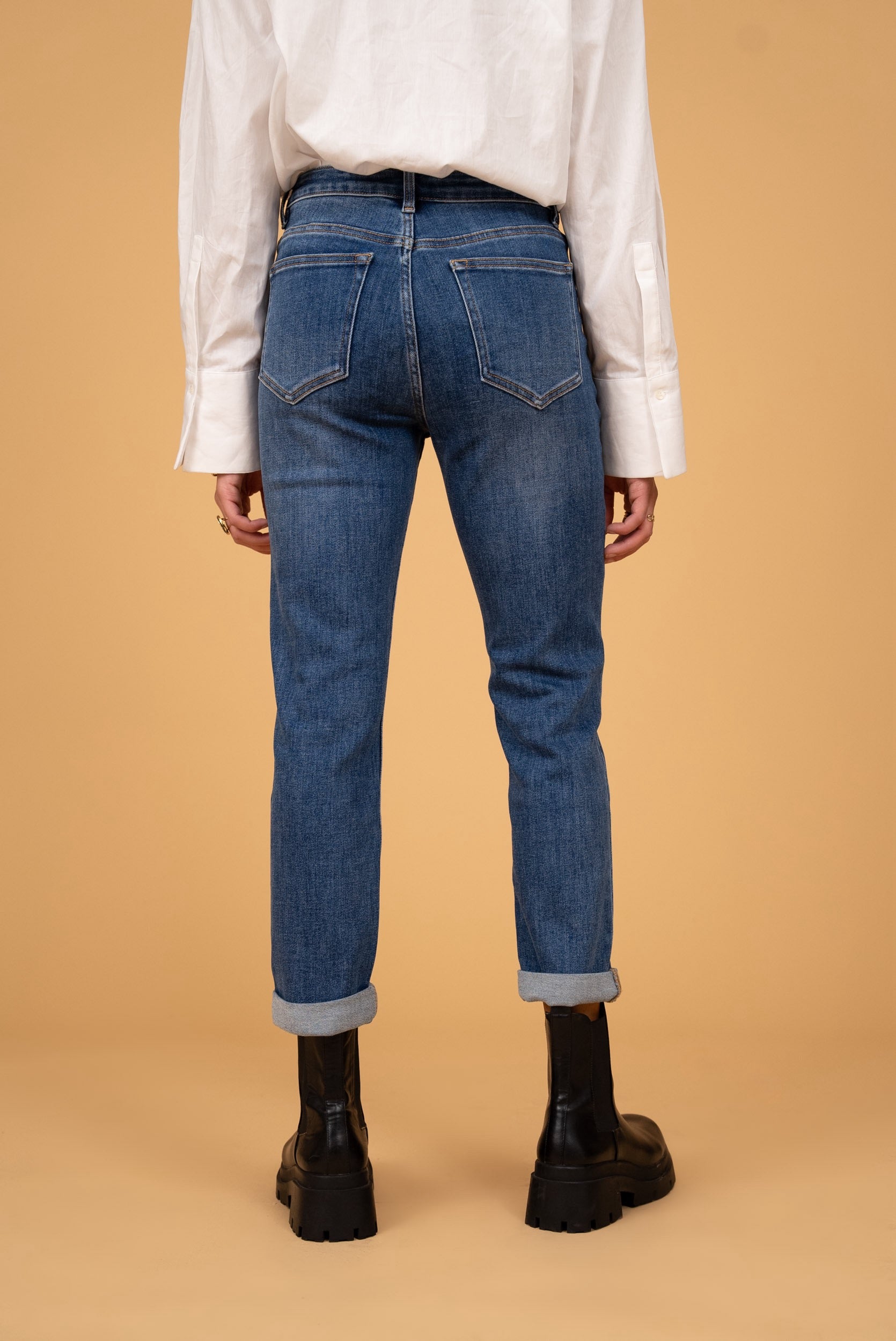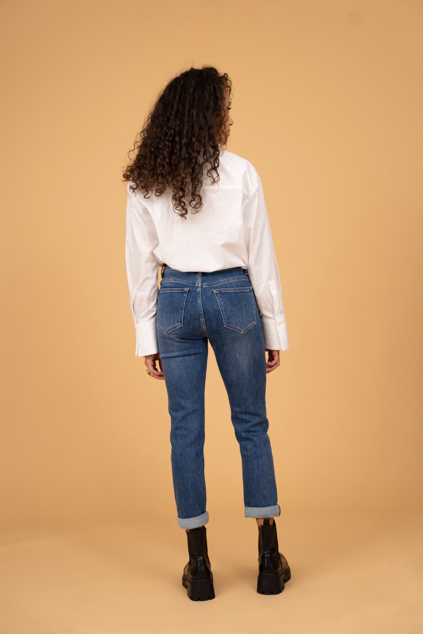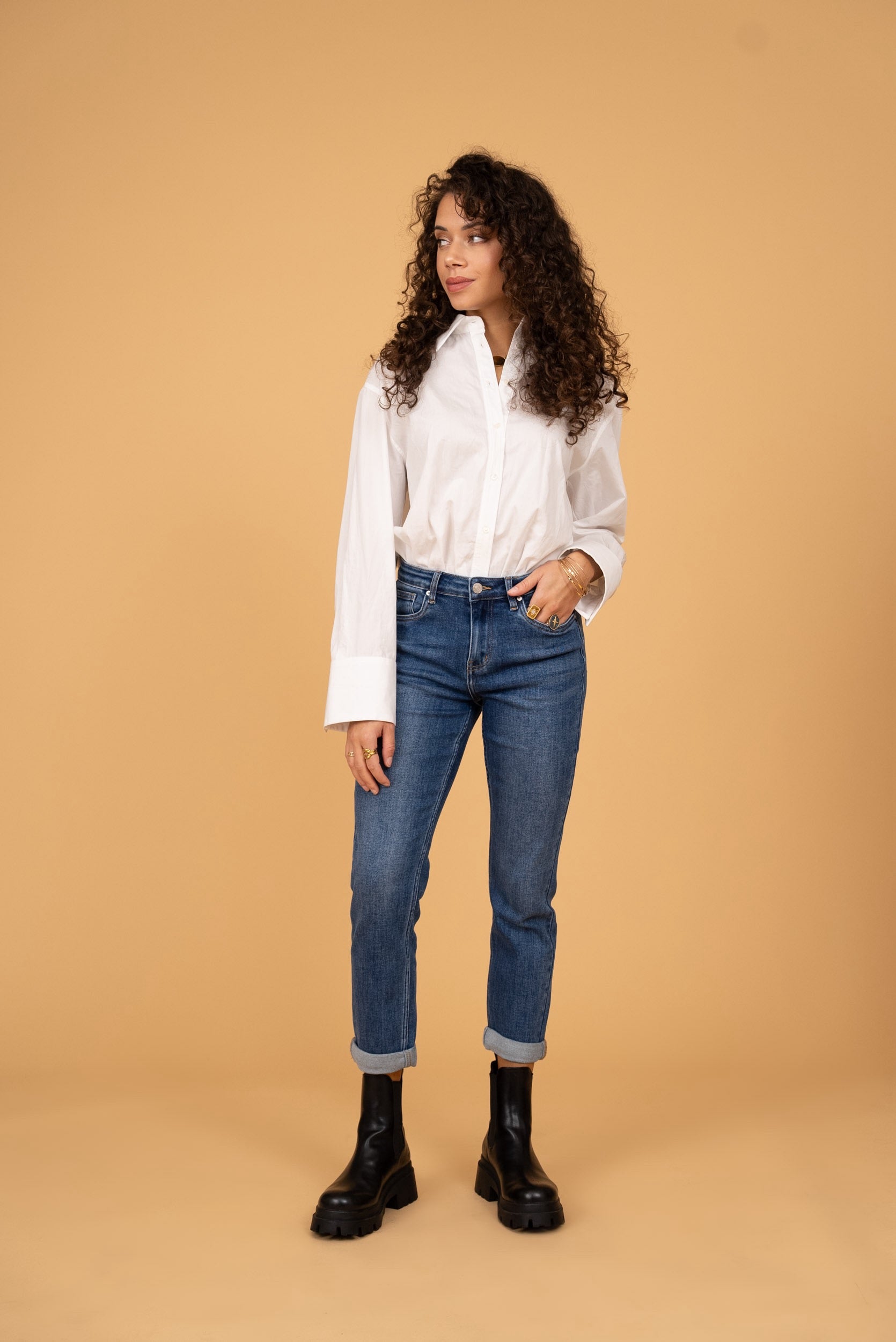 Un jean mom revisité pour un style moderne tout en conservant son charme rétro. Sa coupe flatteuse épouse la taille et offre une allure naturellement décontractée. Idéal pour un look casual chic au quotidien.
