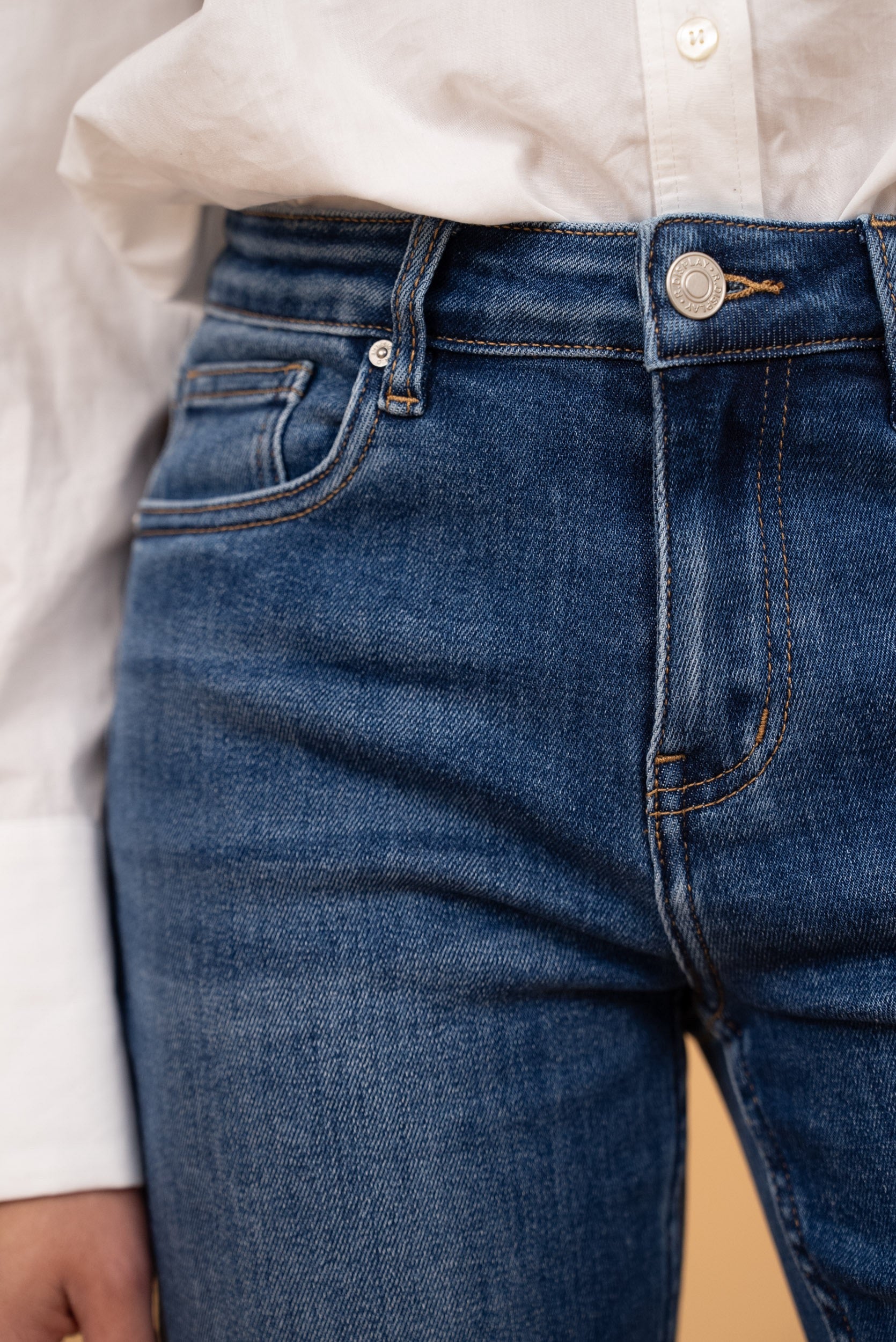 Coupe : Mom, taille haute, ajustée à la taille et plus ample sur les hanches et les jambes