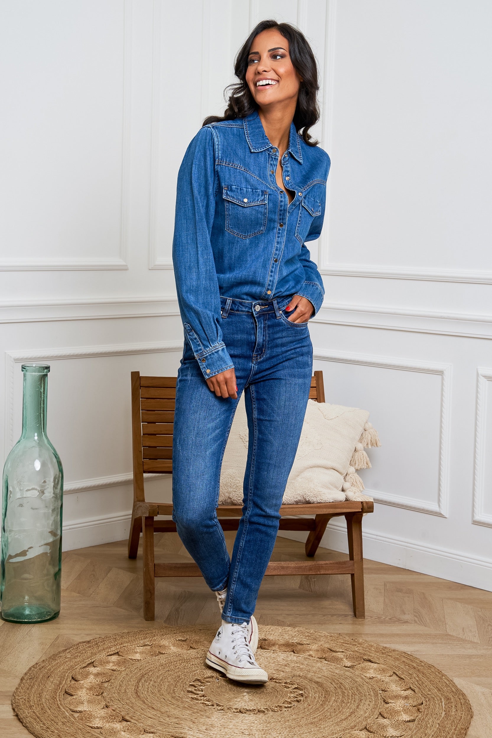 Un jean slim classique revisité avec une touche moderne. Sa coupe ajustée sublime la silhouette tout en assurant un confort optimal grâce à sa toile stretch.
