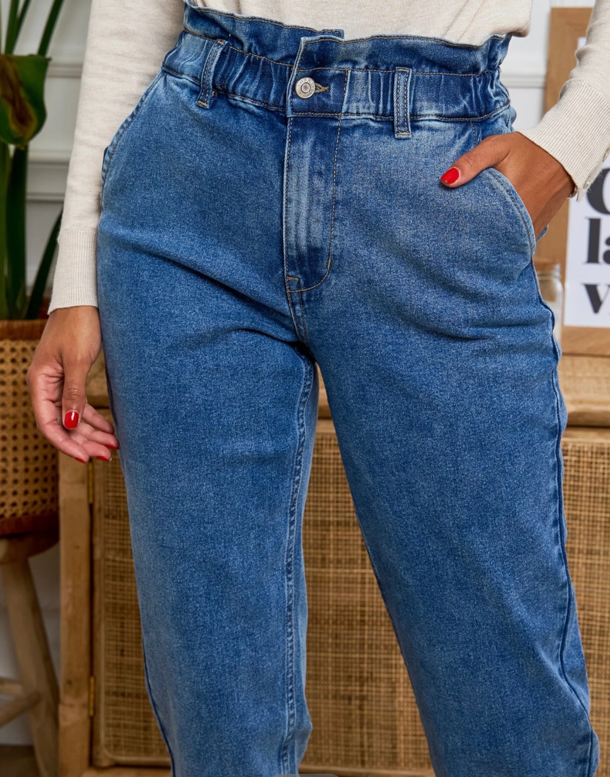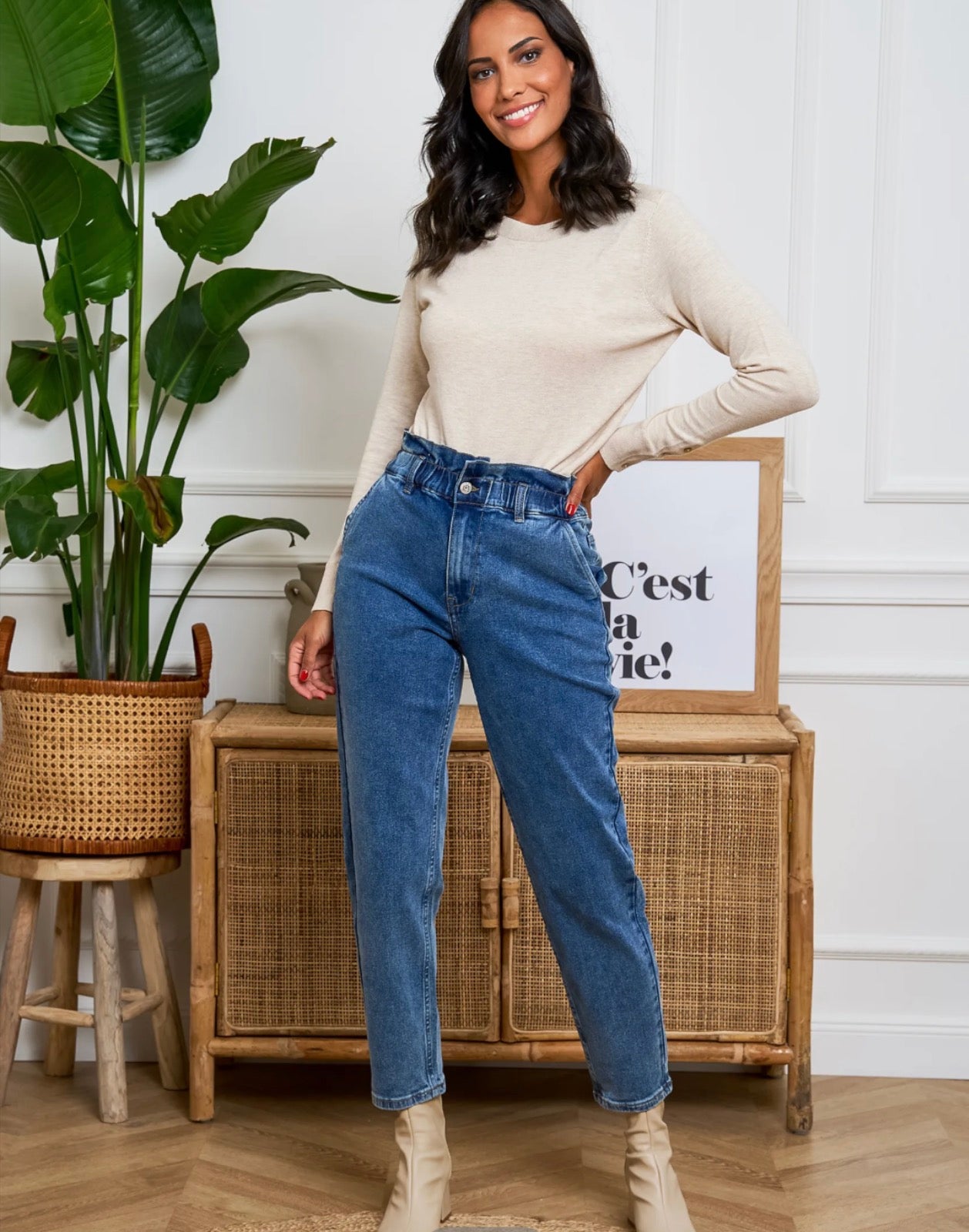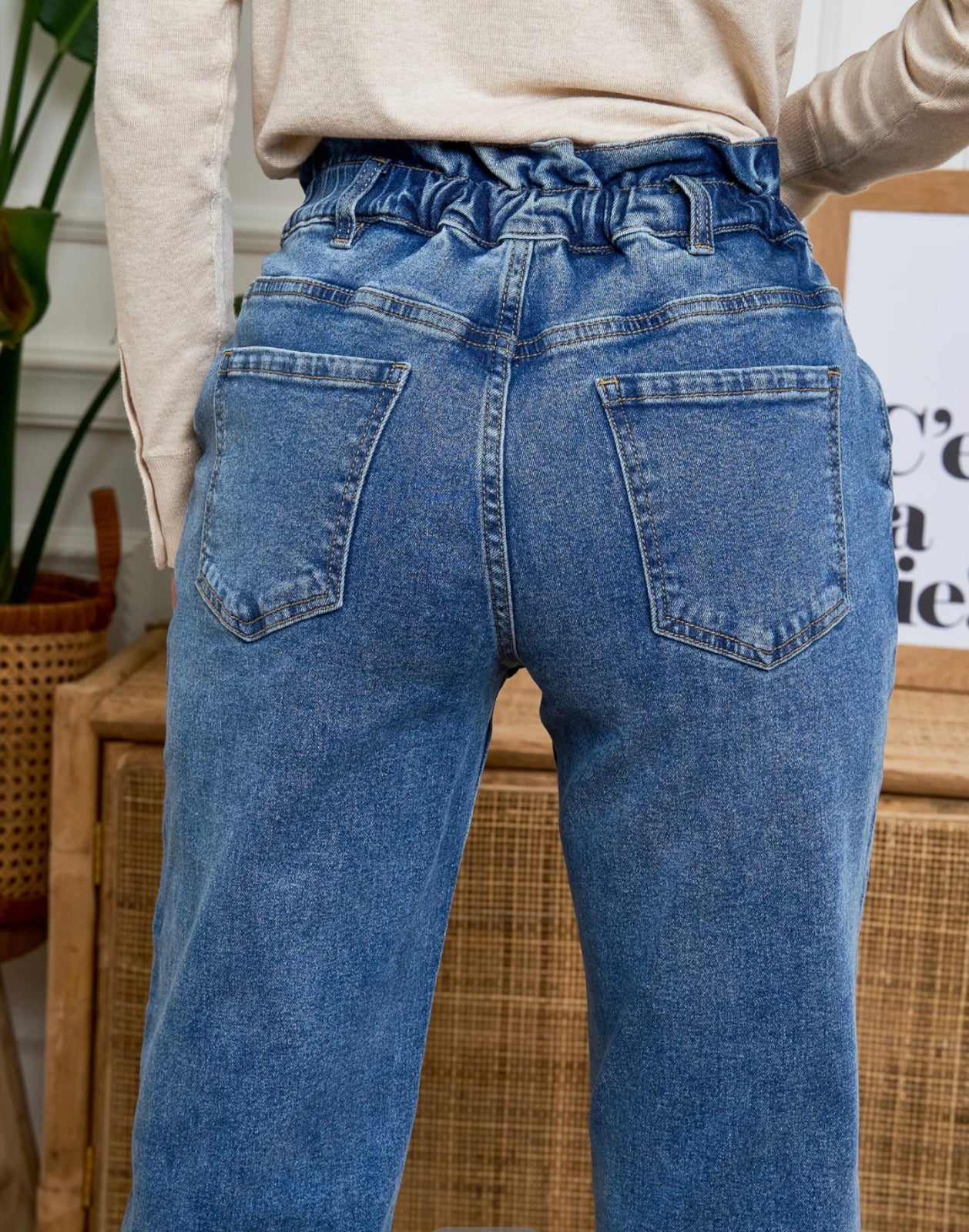Le jean slouchy s'impose comme une pièce forte du dressing casual chic. Avec sa taille haute froncée et sa jambe ample légèrement resserrée, il conjugue décontraction et féminité. Un allié mode facile à porter et ultra confortable.