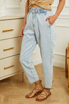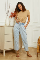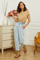 Le Jean Camille revisite le style slouchy avec modernité et confort. Sa taille élastiquée façon paperbag ajoute une touche tendance tout en soulignant la silhouette. Confectionné dans un denim clair souple, il est idéal pour un look décontracté chic.