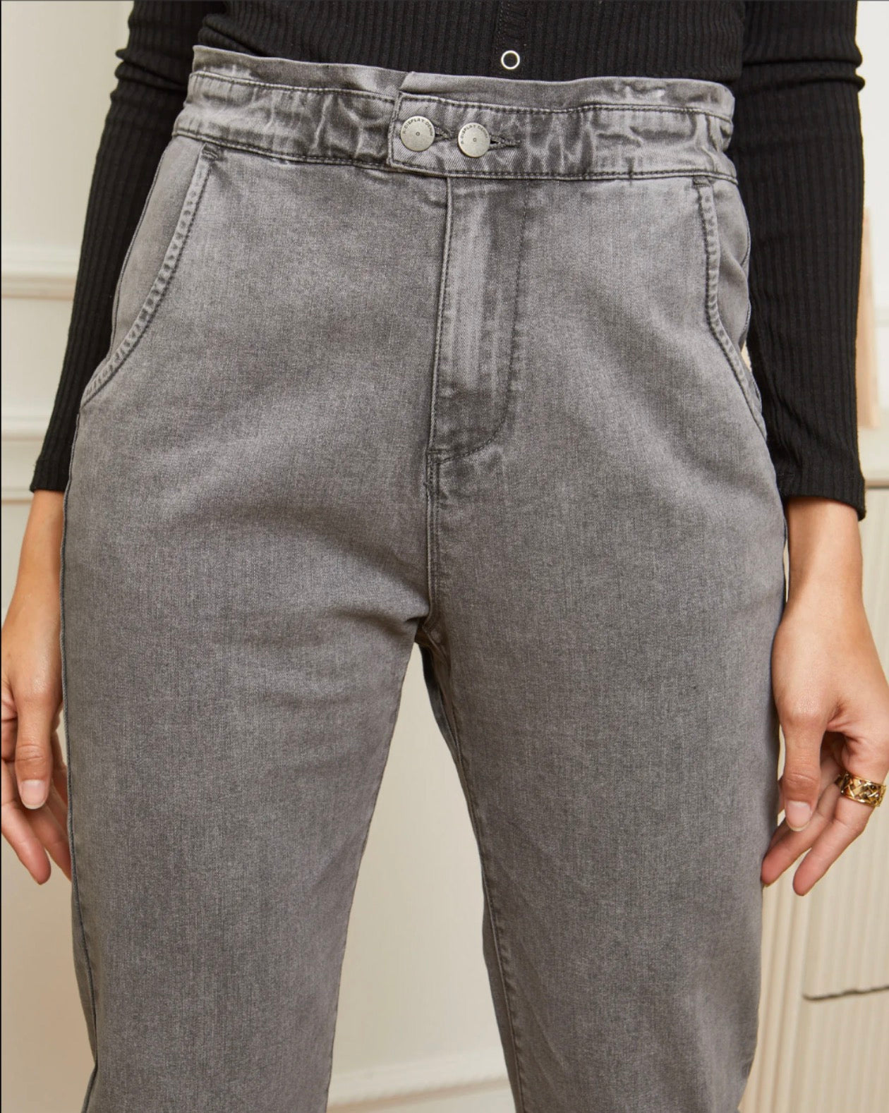Conçu avec une taille haute flatteuse et des passants pour ceinture, il permet de structurer la silhouette. Fermeture par zip et bouton sur le devant pour un enfilage facile.