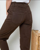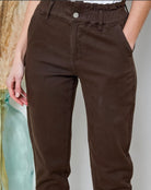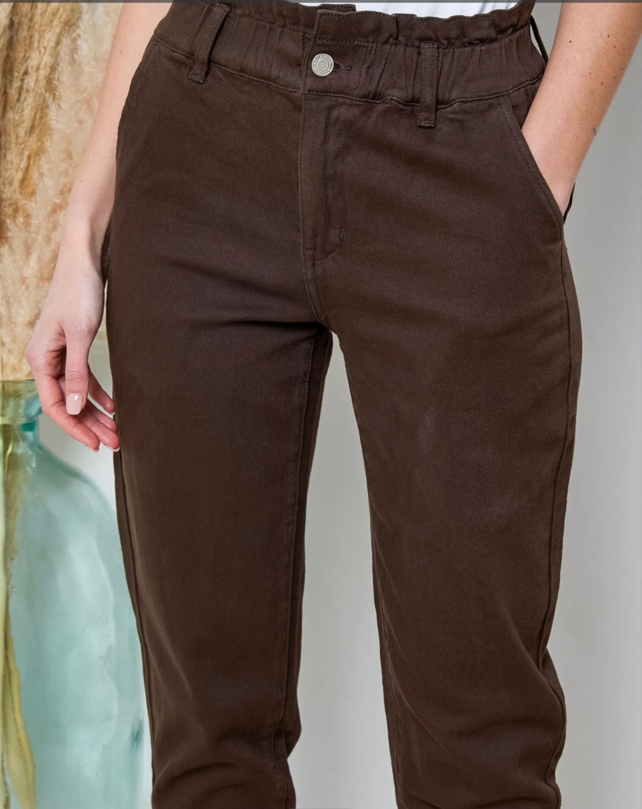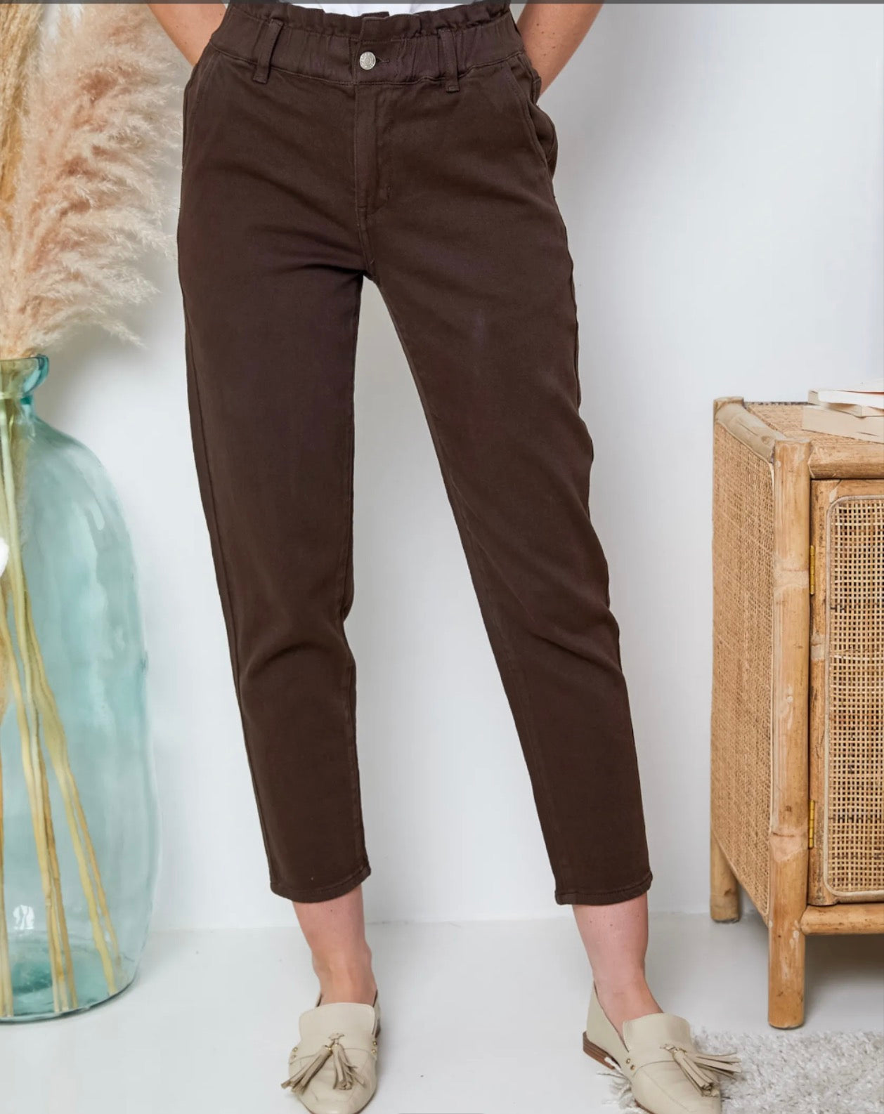 Style et Coupe : Coupe slouchy, semi-ample et fuselée, taille haute élastiquée avec effet froncé