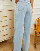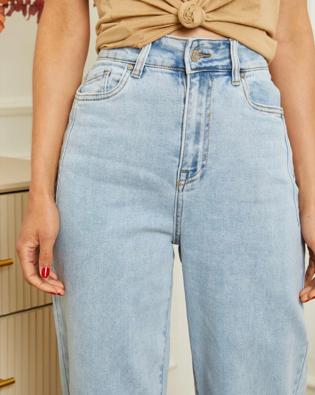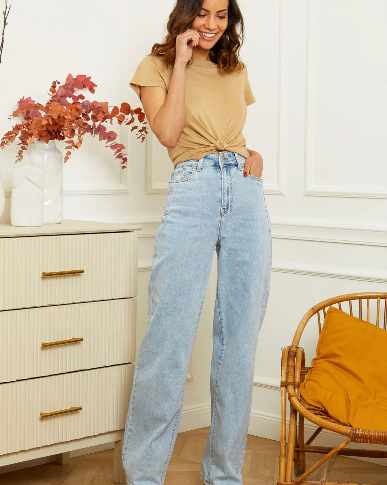 Jean wide leg à l’esprit casual et lumineux, parfait pour un look quotidien décontracté avec une touche tendance. Sa toile bleu clair subtilement délavée apporte fraîcheur et modernité sans en faire trop.