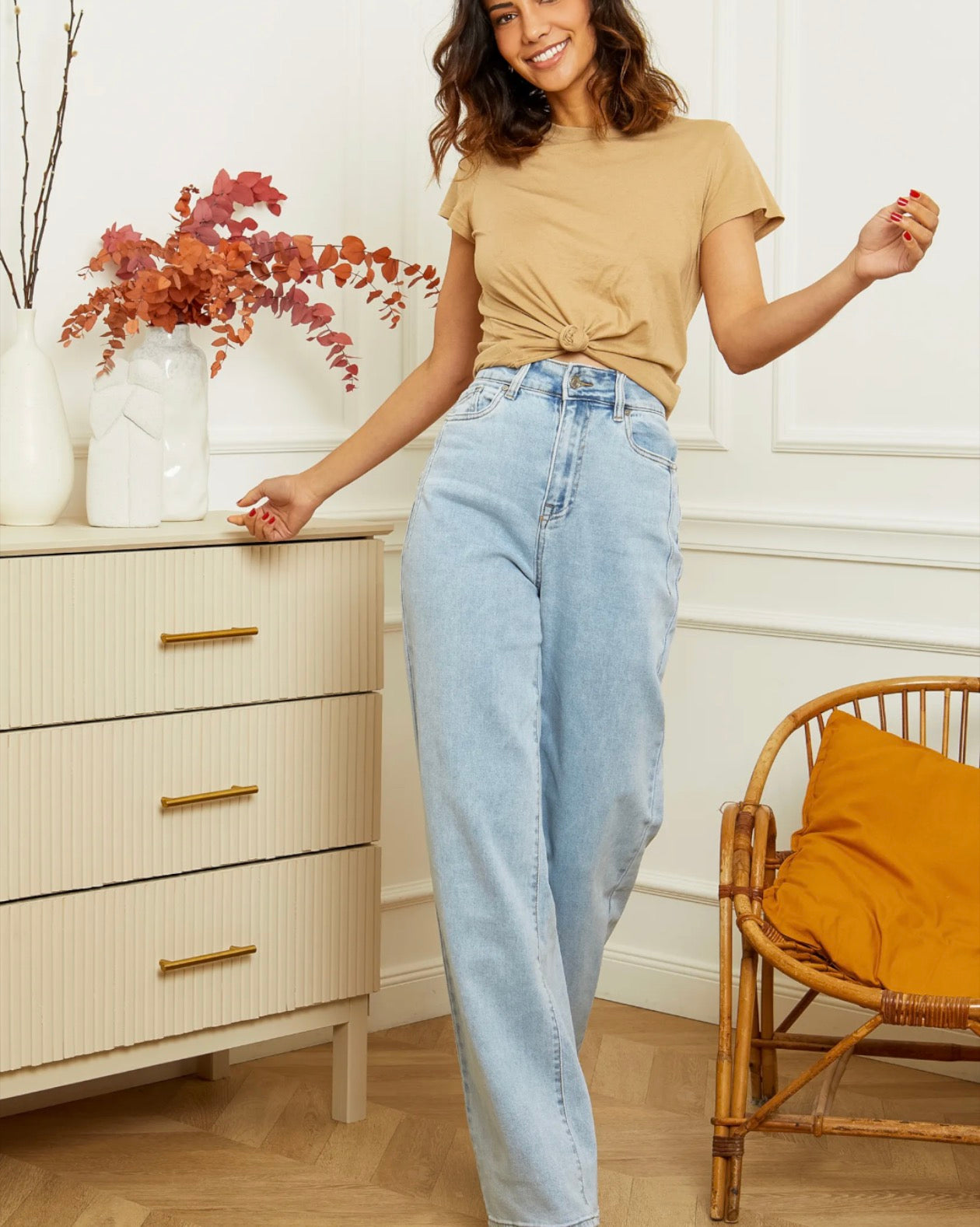 Ourlet : Longueur chevilles, bord franc légèrement effiloché pour un effet cool et actuel