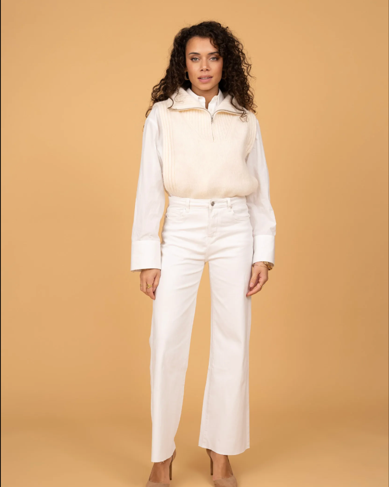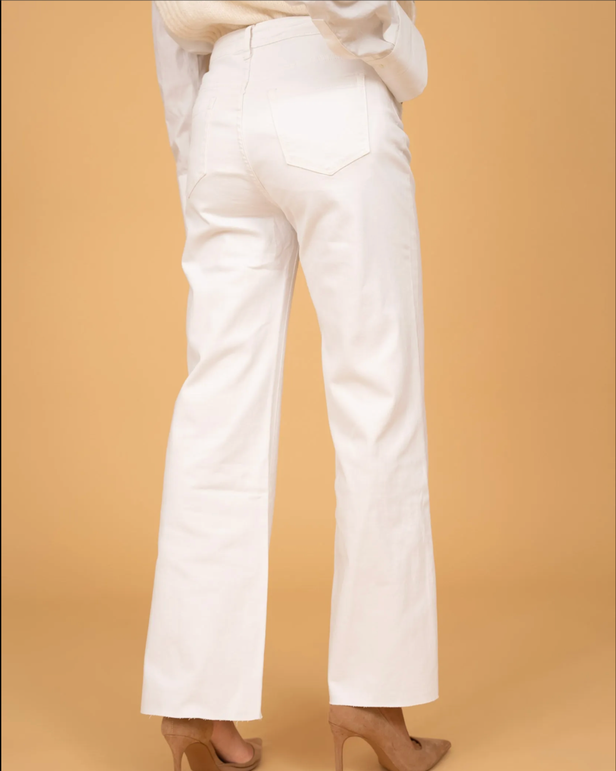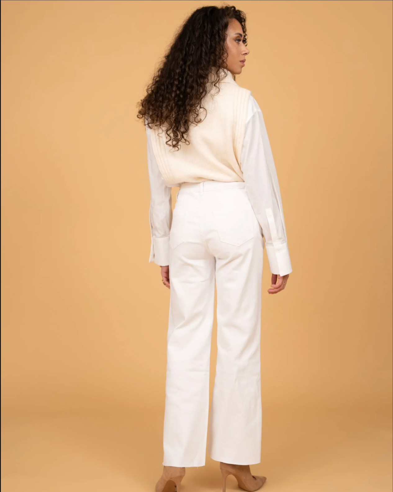 Coupe : Wide leg, évasée de la hanche jusqu’en bas pour une silhouette allongée et aérée