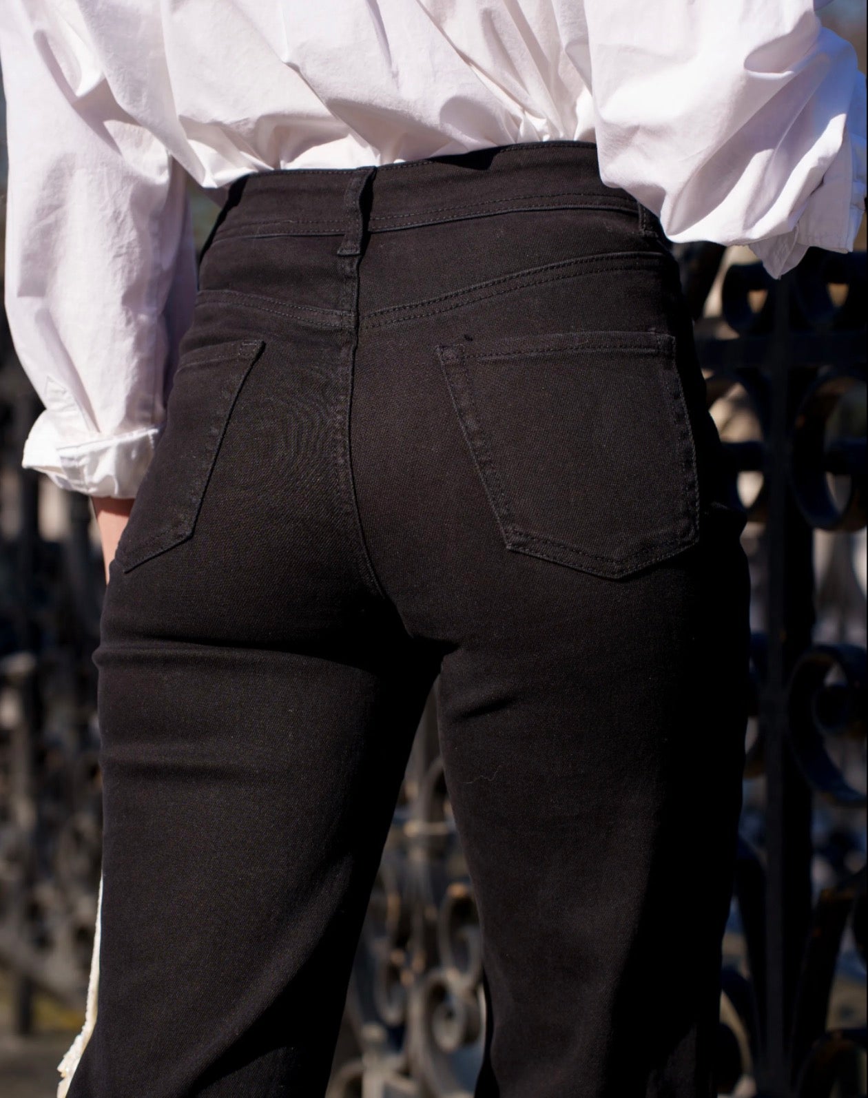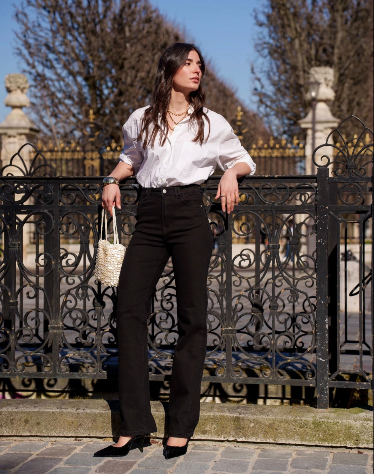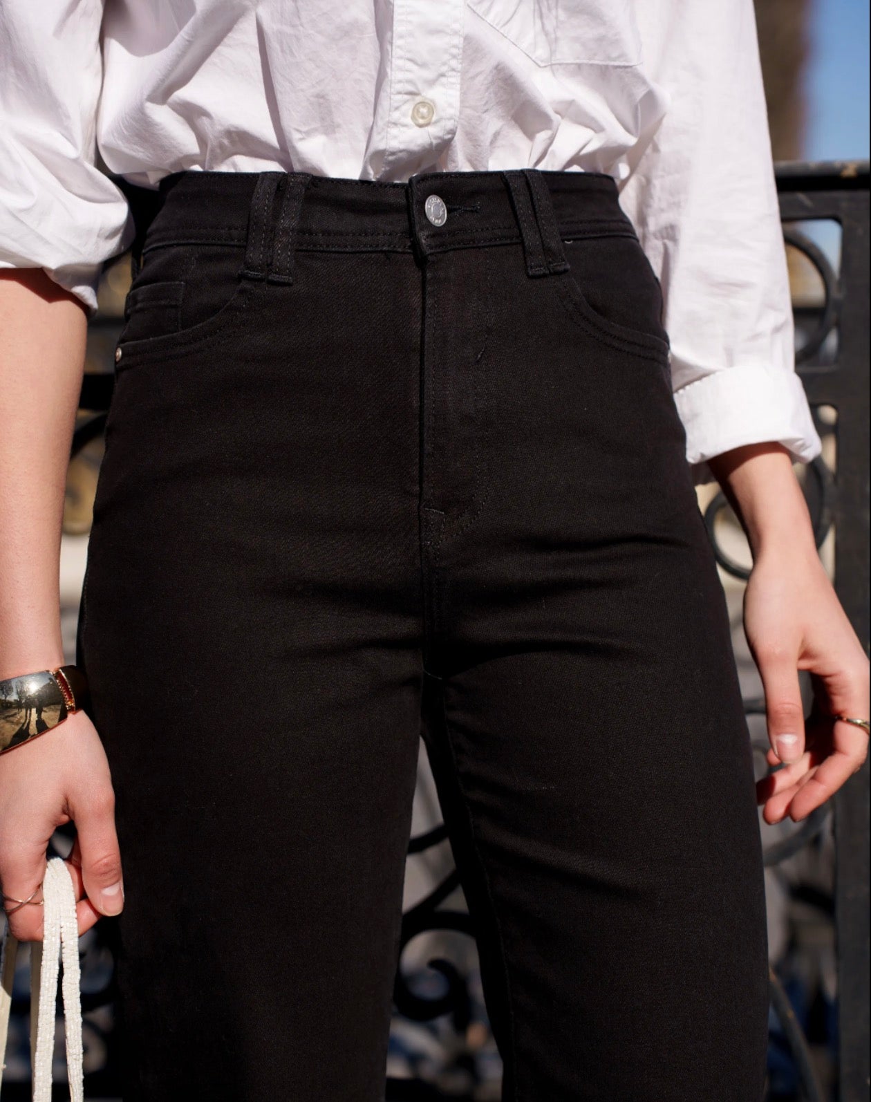 Un classique revisité. Ce jean wide leg noir incarne la coupe parfaite pour élancer la silhouette avec une touche d’élégance. Taille haute, coupe droite évasée et toile stretch pour un confort absolu – à associer aussi bien avec des talons que des sneakers.