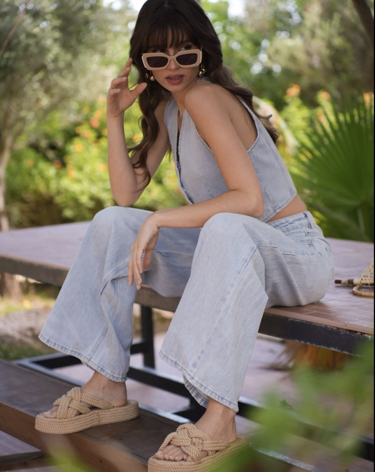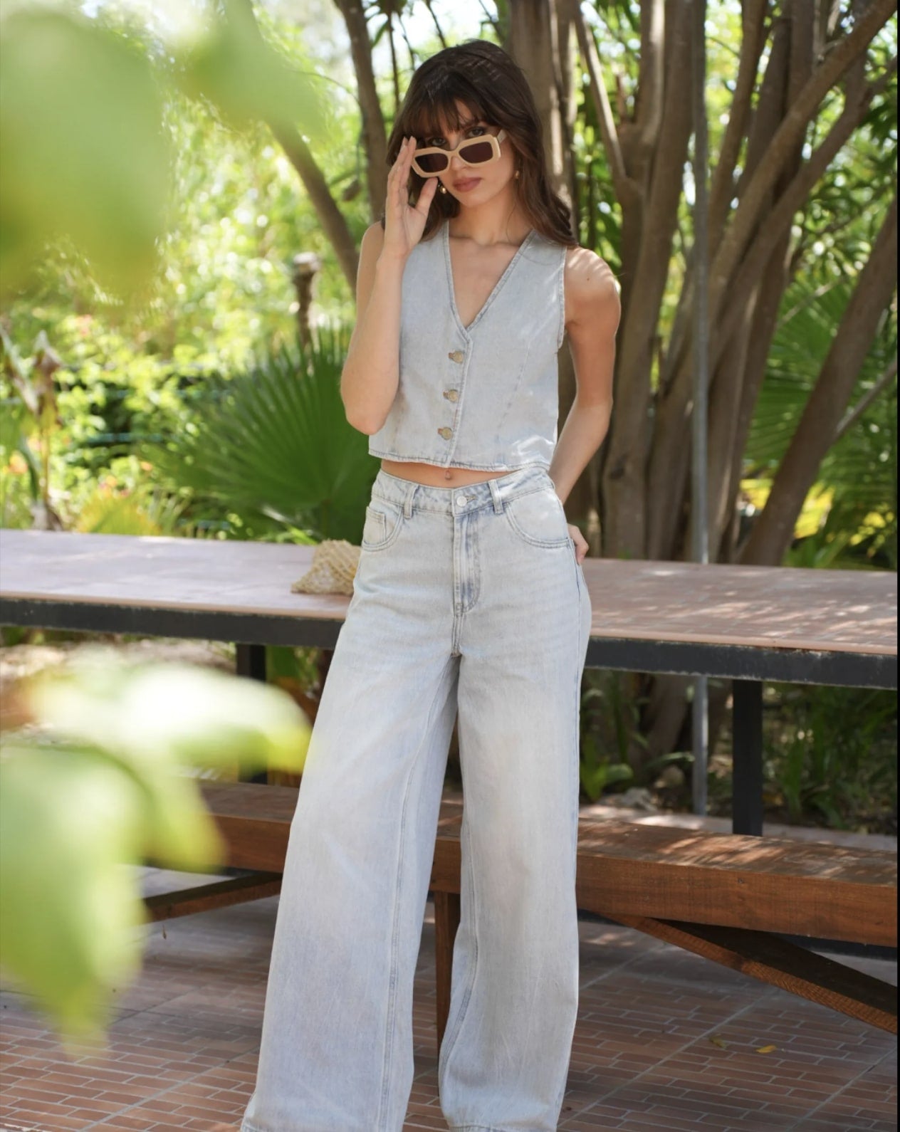 • Style et coupe : Taille haute, jambes très amples, allure fluide et moderne