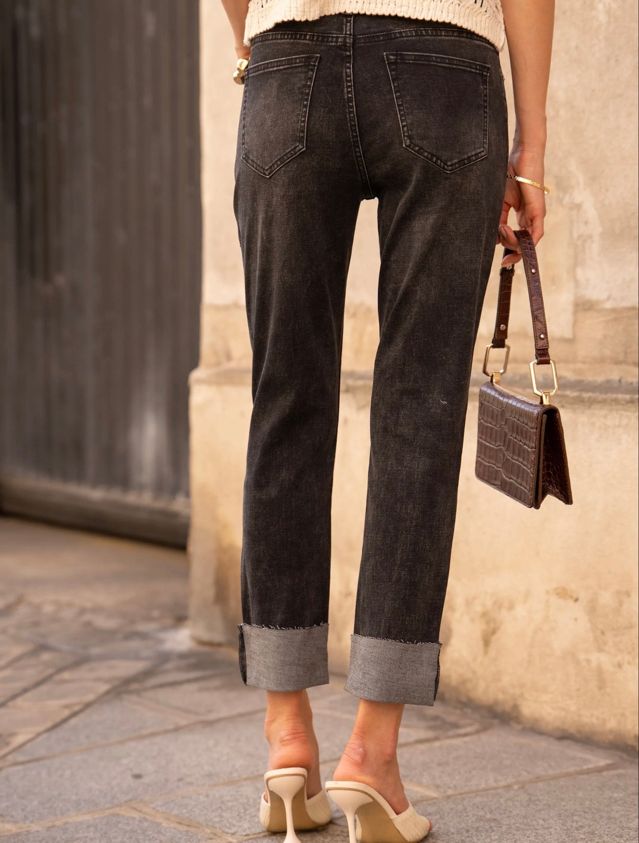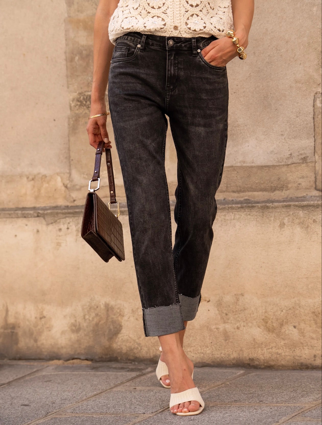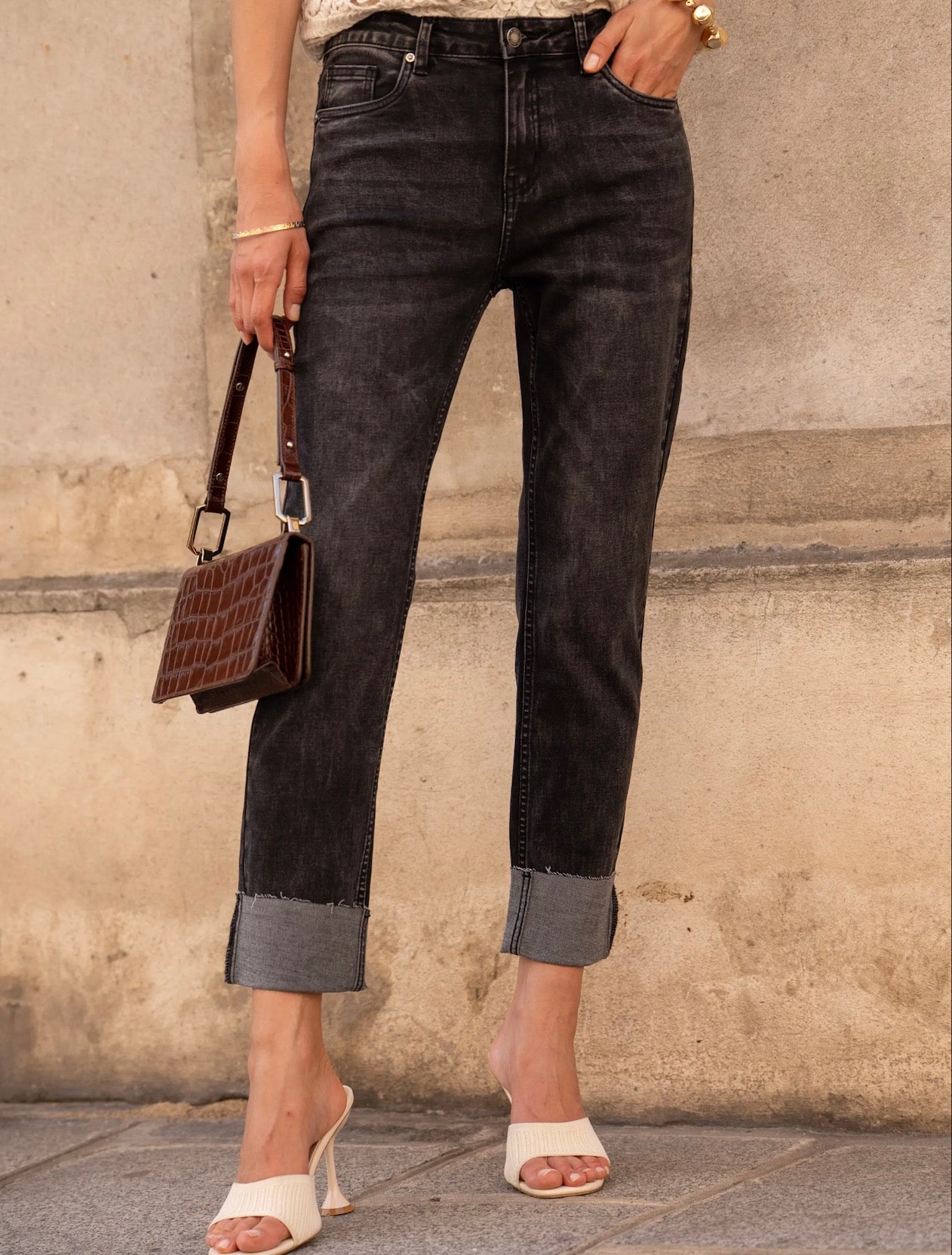 Un essentiel revisité pour un style urbain et affirmé. Ce jeans Relax Gris Foncé allie confort, modernité et allure effortless. Sa coupe droite légèrement fuselée et son revers large en bas apportent une touche mode et décontractée.