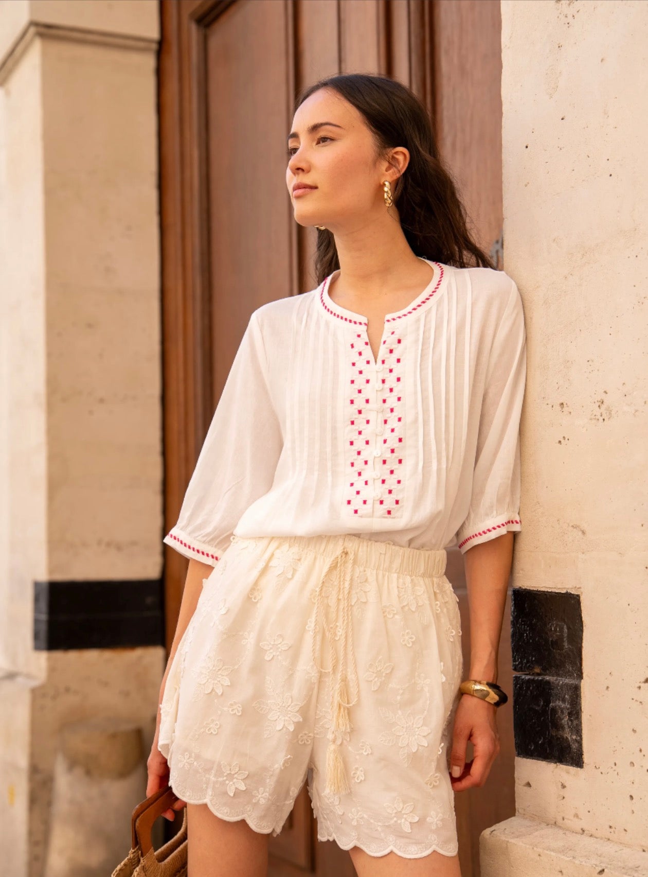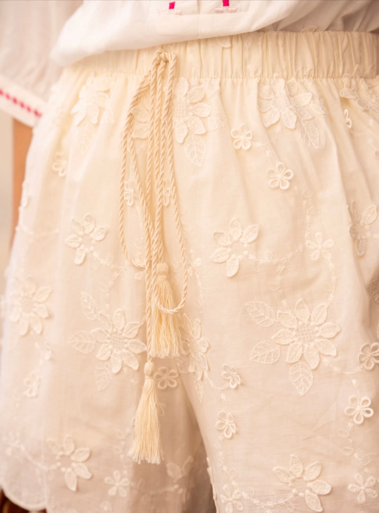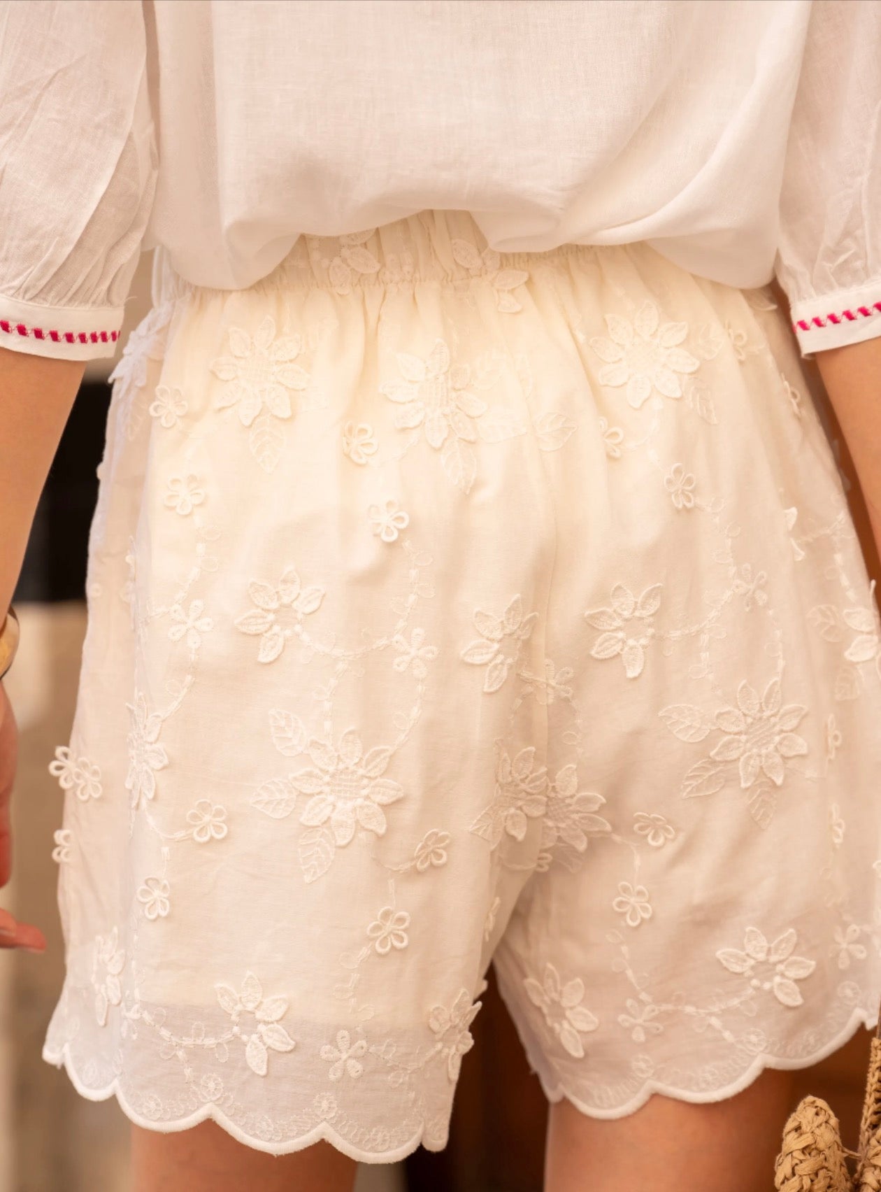 Léger, romantique et résolument estival, ce short brodé en coton est une ode à la douceur des beaux jours.