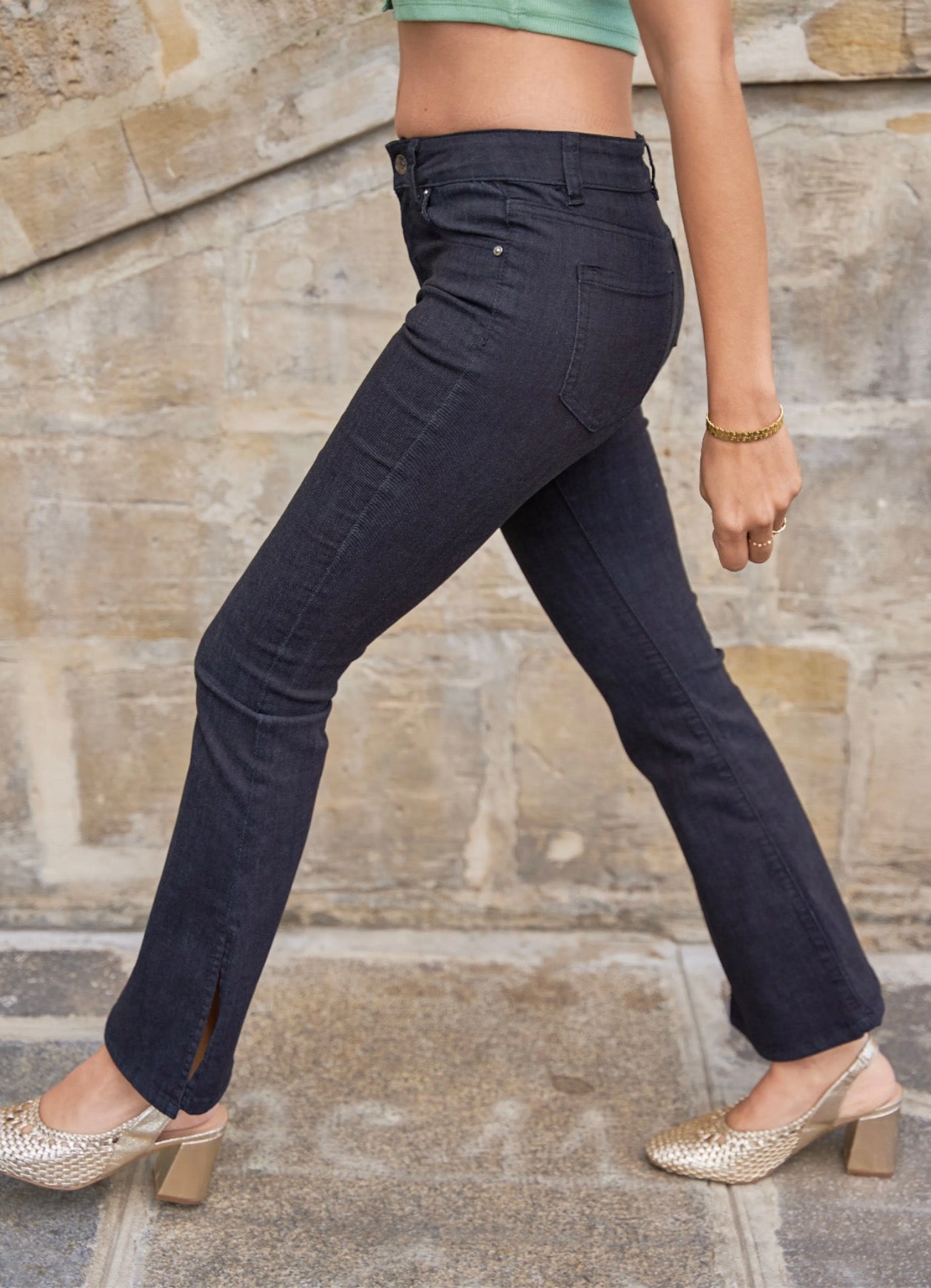 Coupe : Bootcut légèrement évasée, effet jambes allongées