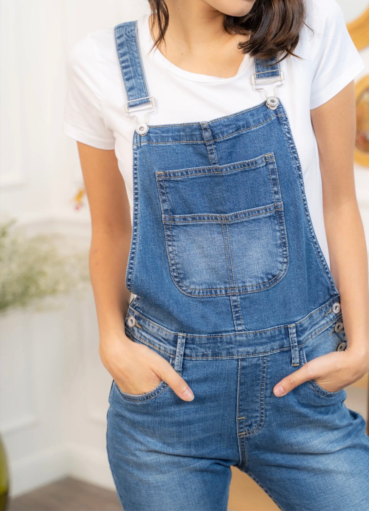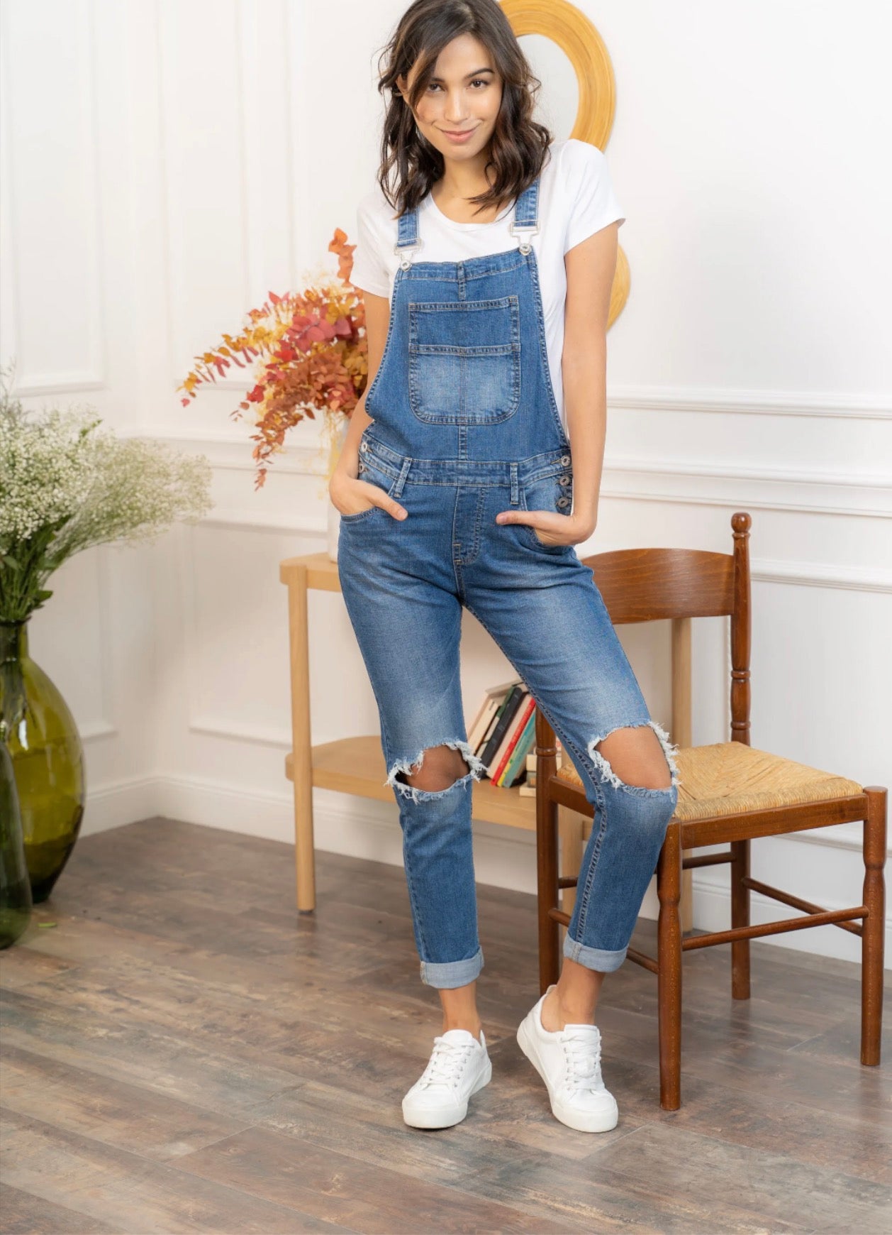 Cette salopette en jean insuffle une allure décontractée et résolument tendance à la silhouette. Sa coupe slim met en valeur les jambes tout en assurant un confort optimal. Le denim légèrement délavé apporte une touche vintage, tandis que les genoux déchirés renforcent son esprit casual urbain. Facile à associer avec un tee-shirt ou un sweat, elle devient une pièce forte du dressing du quotidien.
