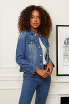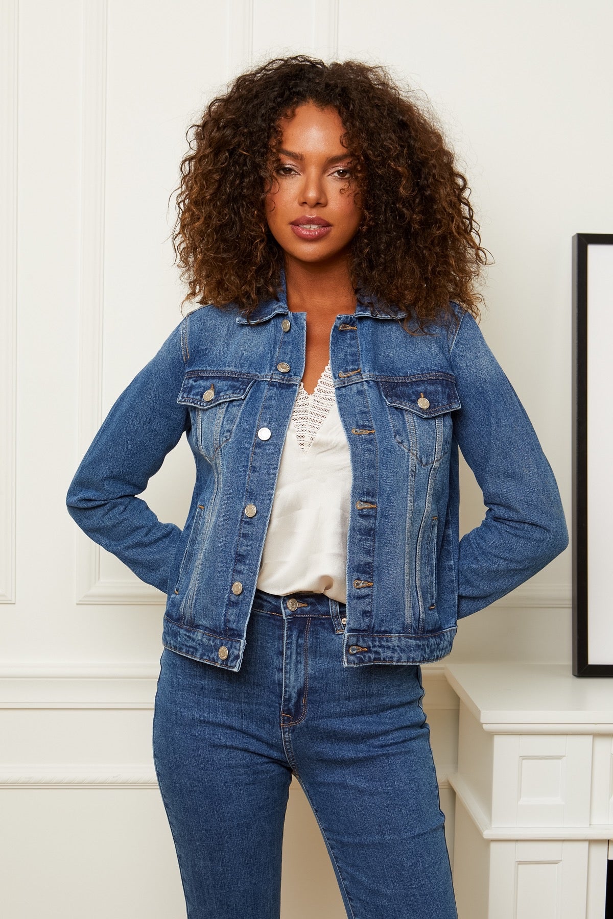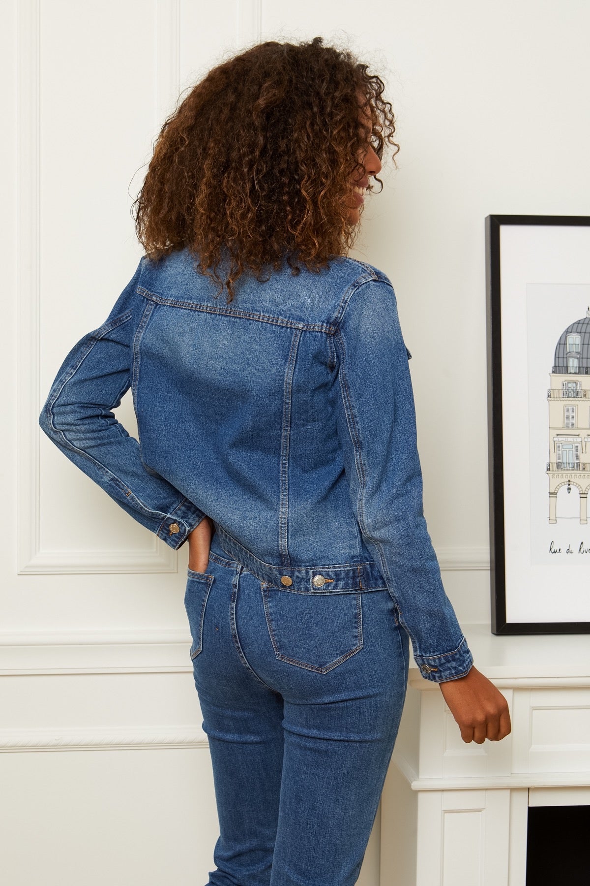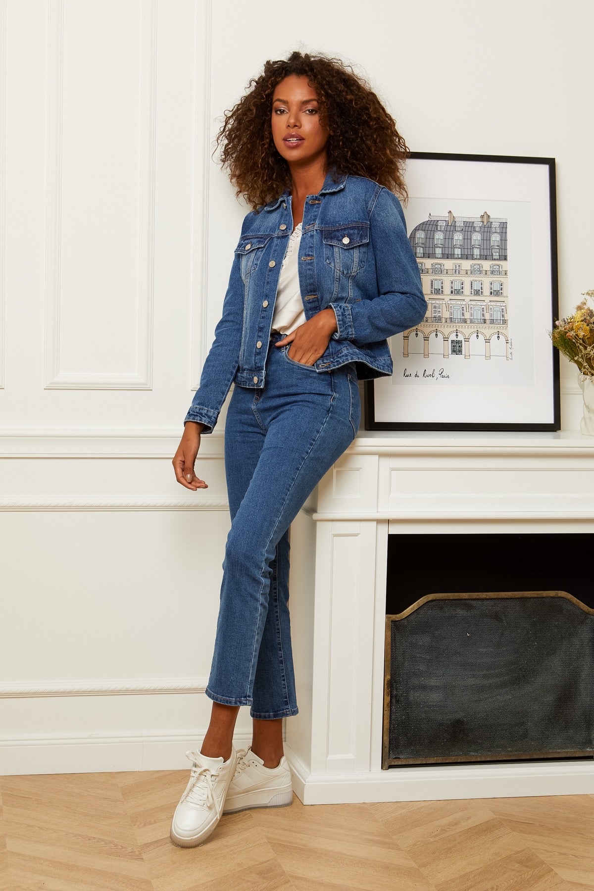 Veste en denim classique à la coupe droite, idéale pour compléter un look casual ou structurer une tenue plus habillée. Un indispensable du vestiaire féminin, à porter toute l’année.