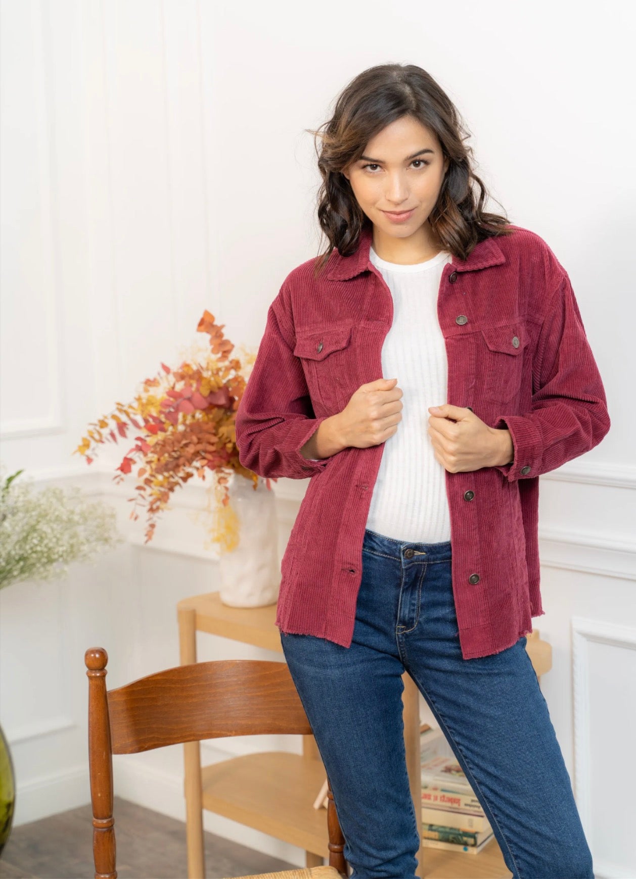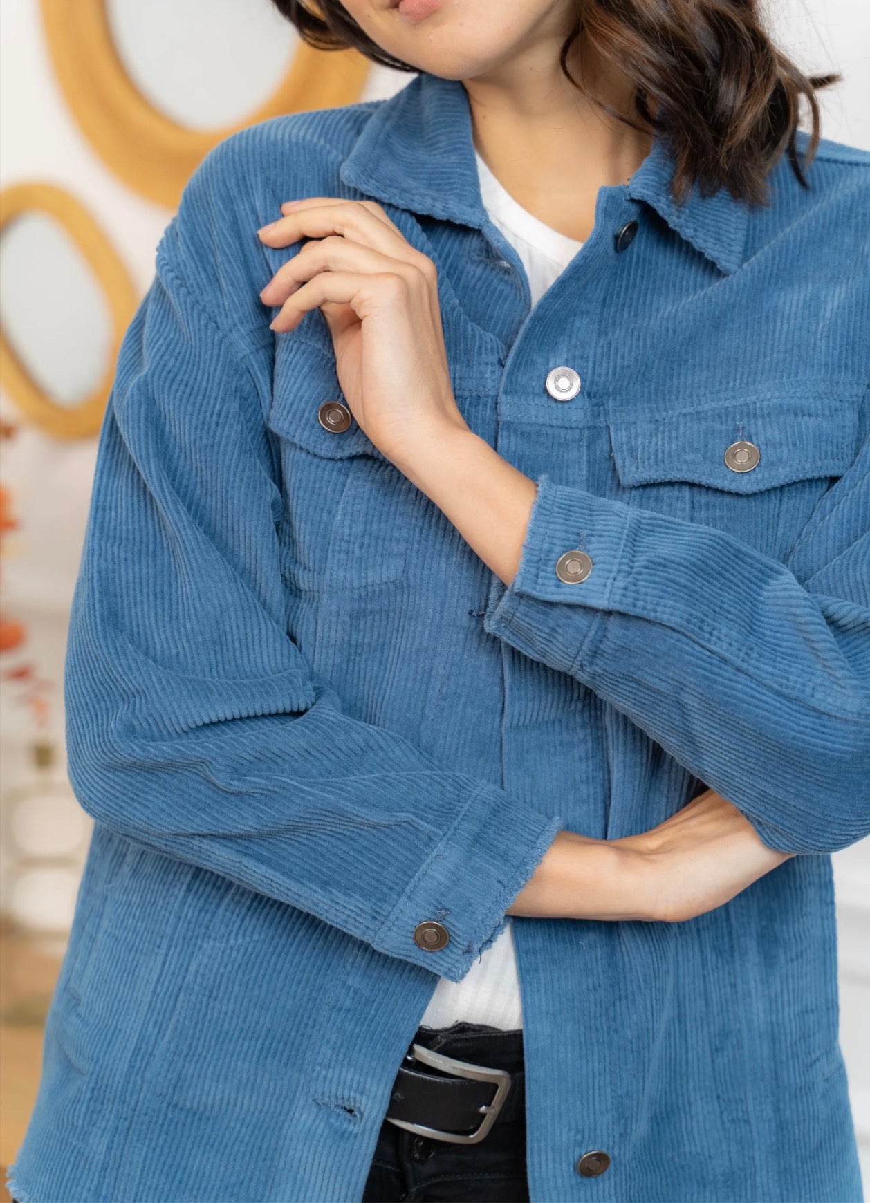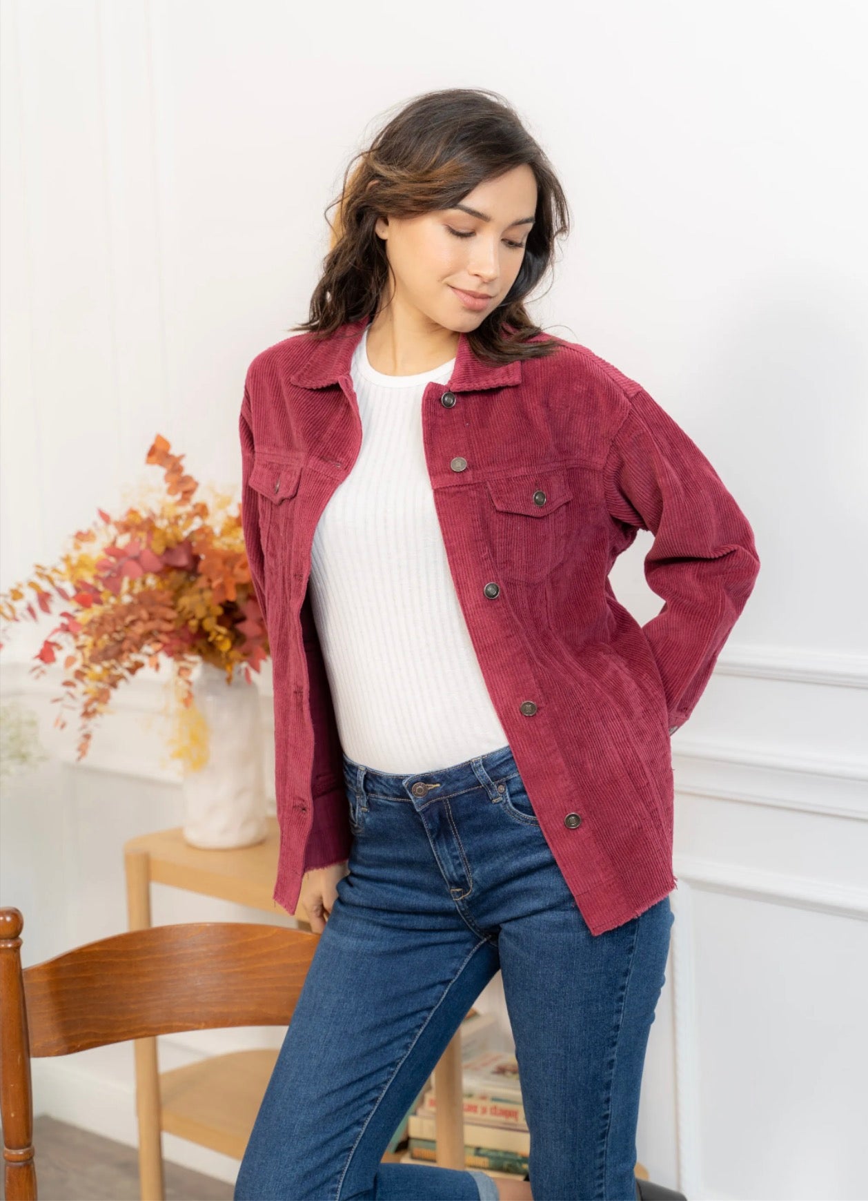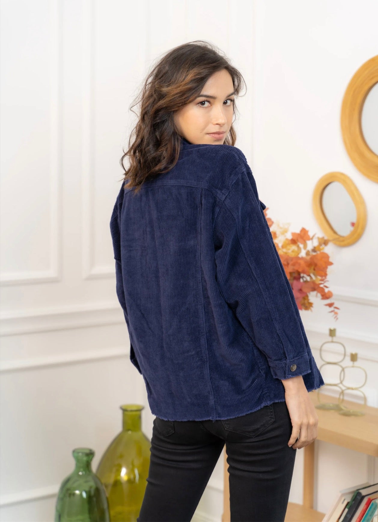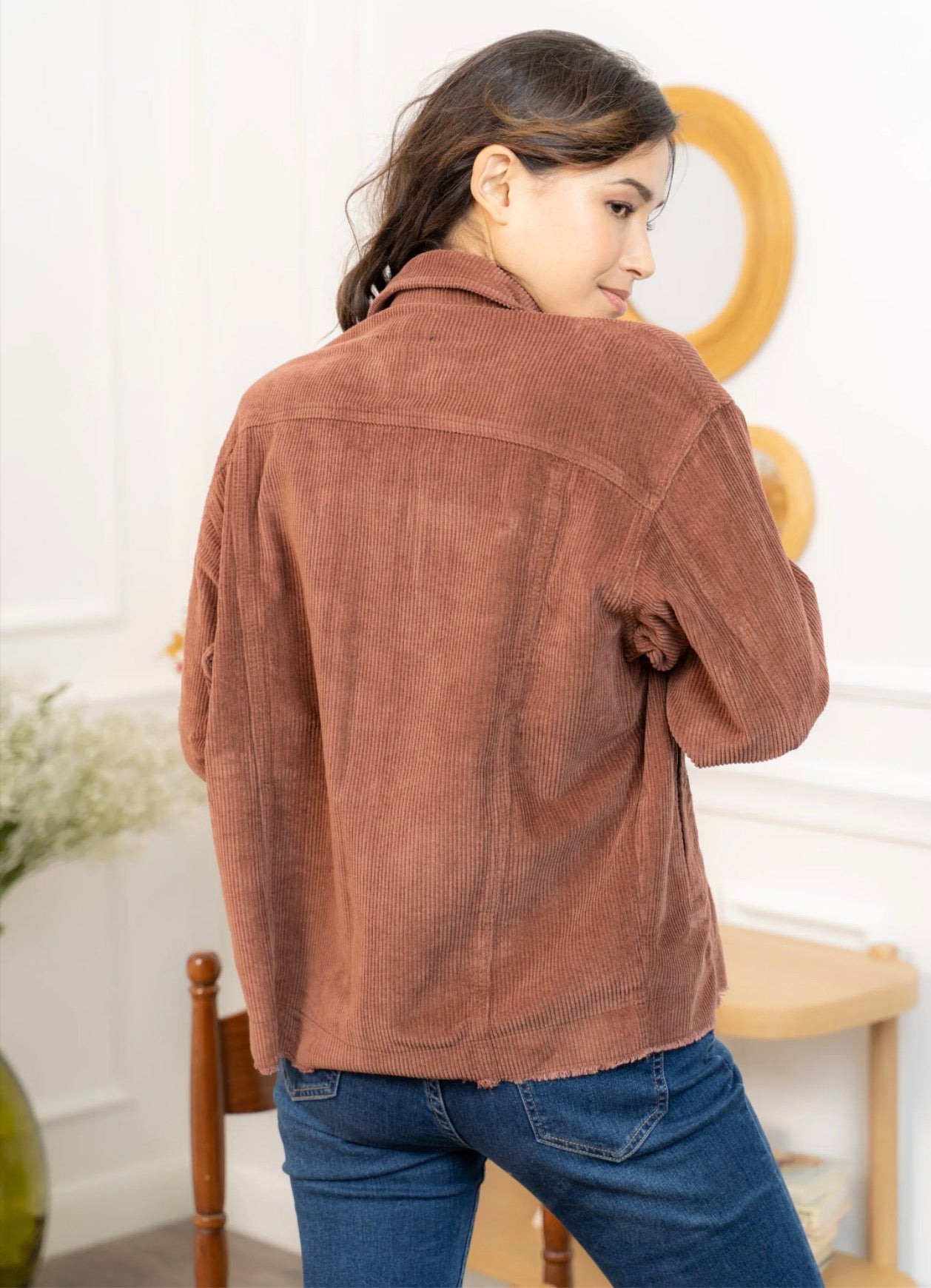 Cette veste en velours offre une allure à la fois cosy et tendance grâce à sa coupe oversize et sa texture côtelée ultra-douce. Facile à superposer, elle apporte immédiatement du style à une tenue simple comme un tee-shirt blanc et un jean, tout en restant confortable pour le quotidien. Ses poches plaquées, ses boutons pression métalliques et ses finitions légèrement effilochées lui donnent une touche casual-chic parfaite. Déclinée en plusieurs couleurs, elle s’adapte à toutes les envies et se porte aussi bien ouverte que boutonnée pour varier les looks.