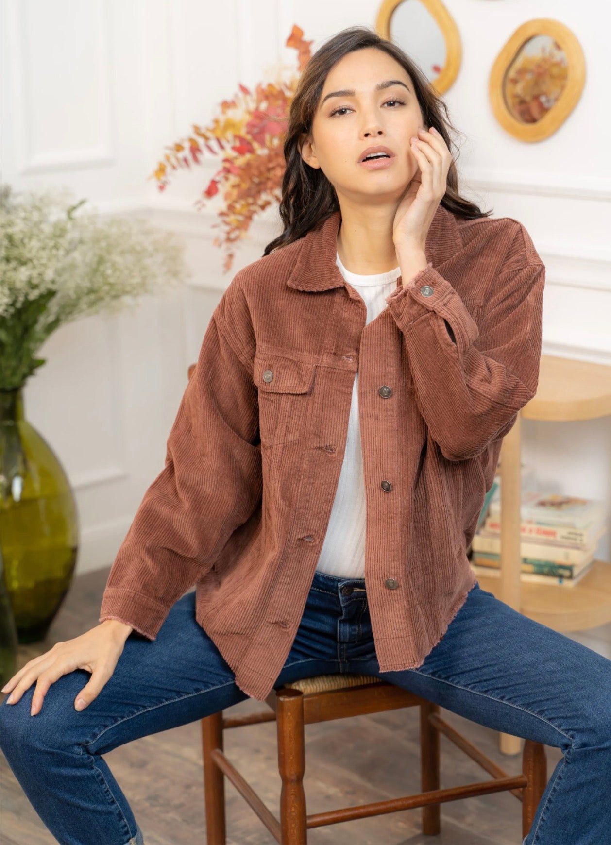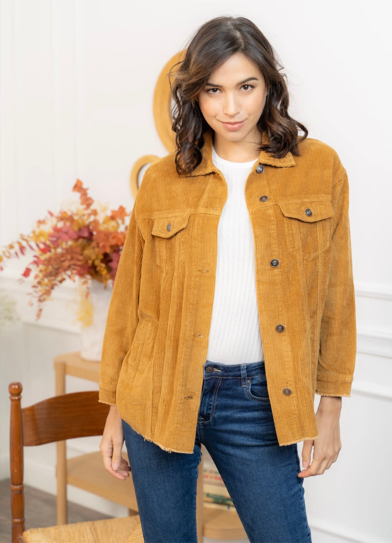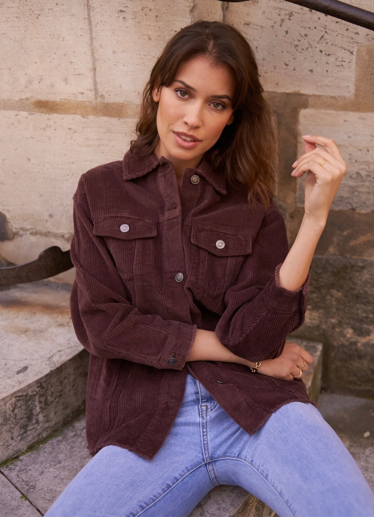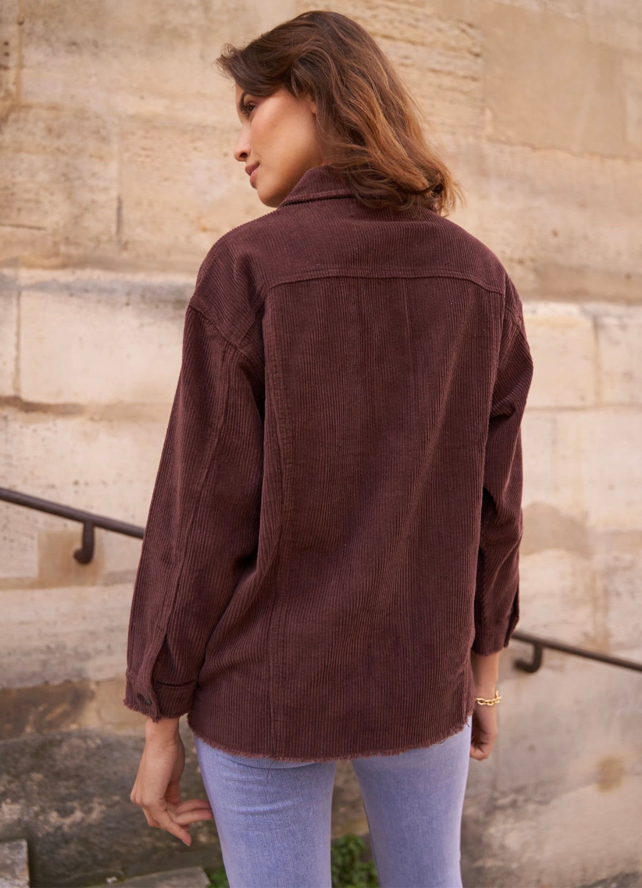 Cette veste en velours offre une allure à la fois cosy et tendance grâce à sa coupe oversize et sa texture côtelée ultra-douce. Facile à superposer, elle apporte immédiatement du style à une tenue simple comme un tee-shirt blanc et un jean, tout en restant confortable pour le quotidien. Ses poches plaquées, ses boutons pression métalliques et ses finitions légèrement effilochées lui donnent une touche casual-chic parfaite. Déclinée en plusieurs couleurs, elle s’adapte à toutes les envies et se porte aussi bien ouverte que boutonnée pour varier les looks.