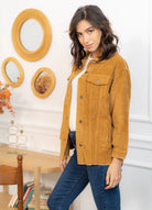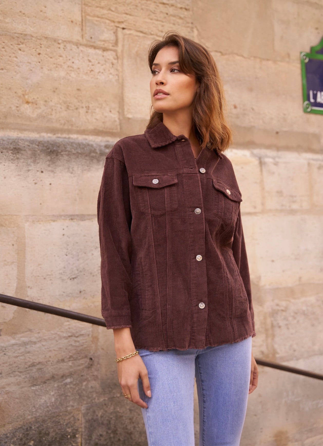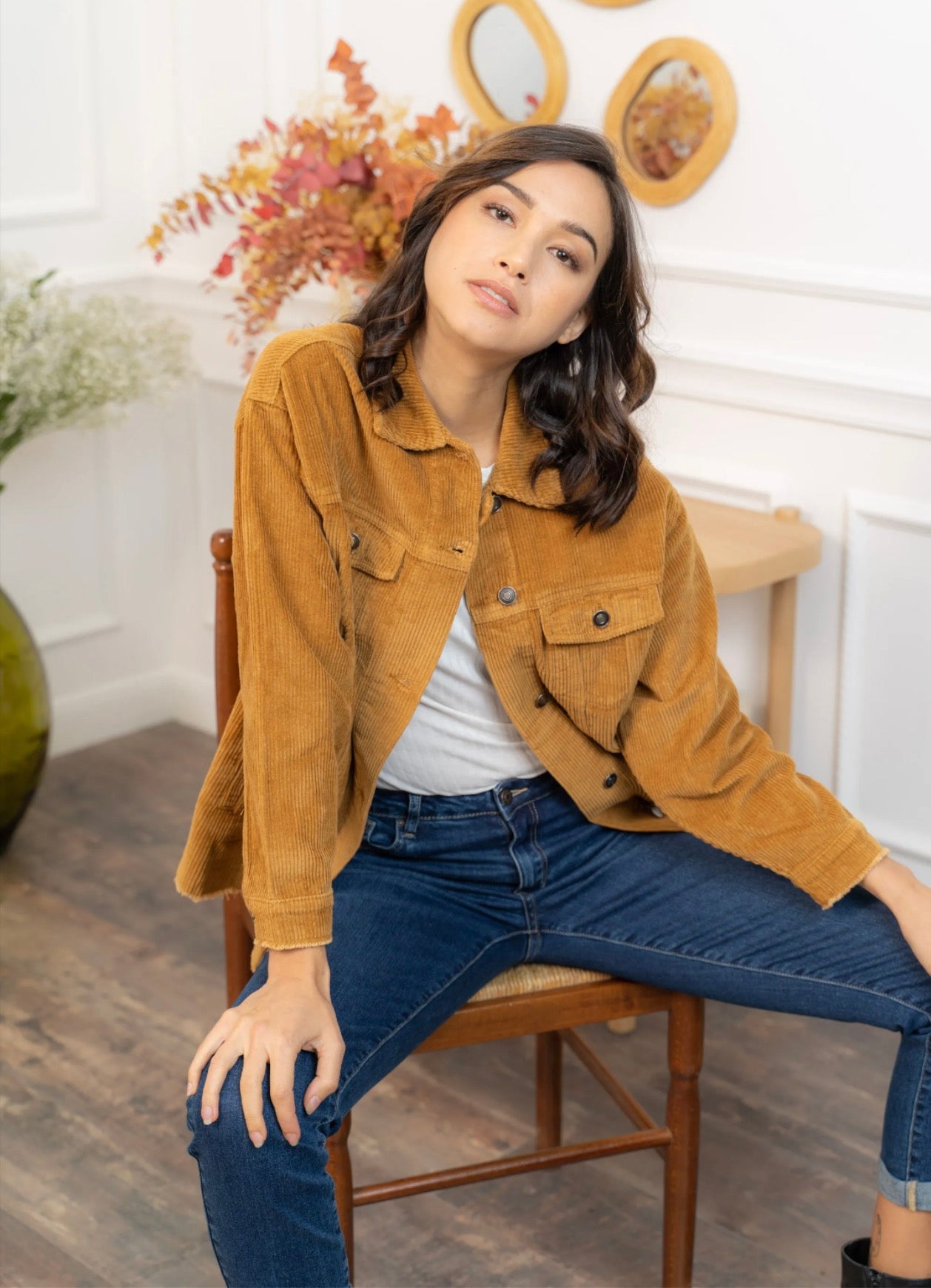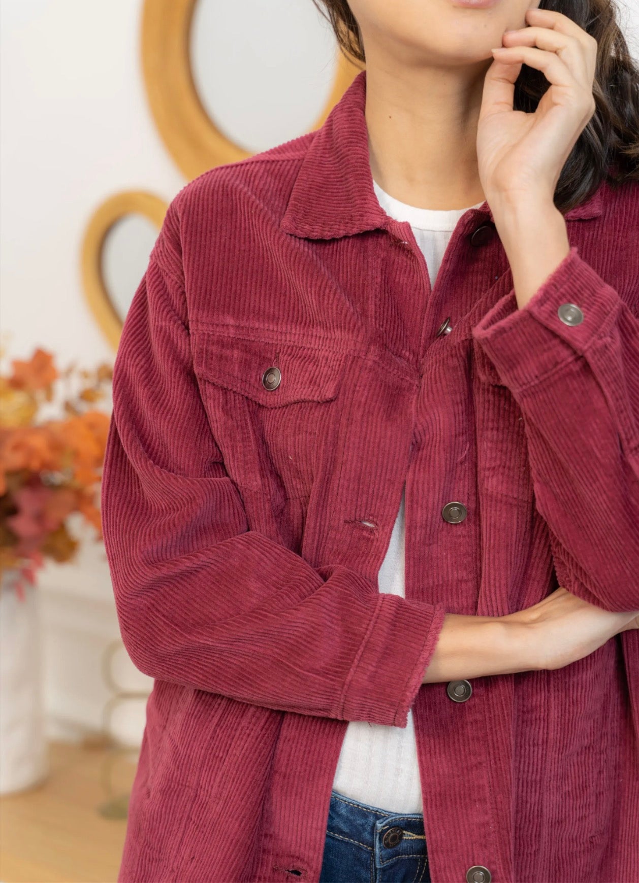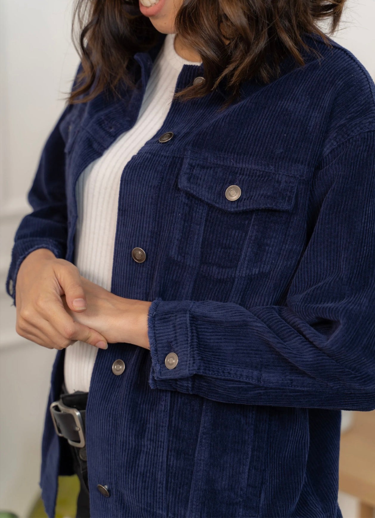 Cette veste en velours offre une allure à la fois cosy et tendance grâce à sa coupe oversize et sa texture côtelée ultra-douce. Facile à superposer, elle apporte immédiatement du style à une tenue simple comme un tee-shirt blanc et un jean, tout en restant confortable pour le quotidien. Ses poches plaquées, ses boutons pression métalliques et ses finitions légèrement effilochées lui donnent une touche casual-chic parfaite. Déclinée en plusieurs couleurs, elle s’adapte à toutes les envies et se porte aussi bien ouverte que boutonnée pour varier les looks.