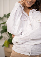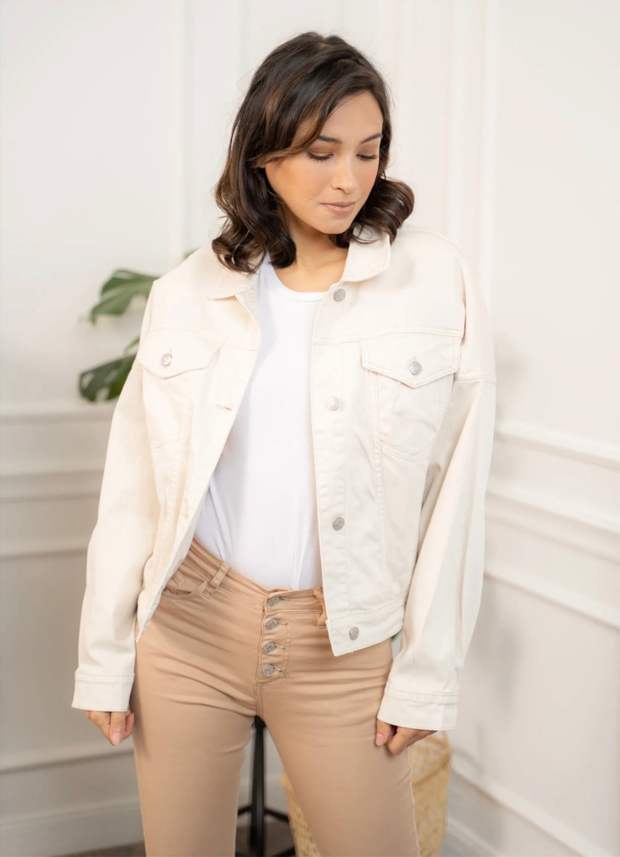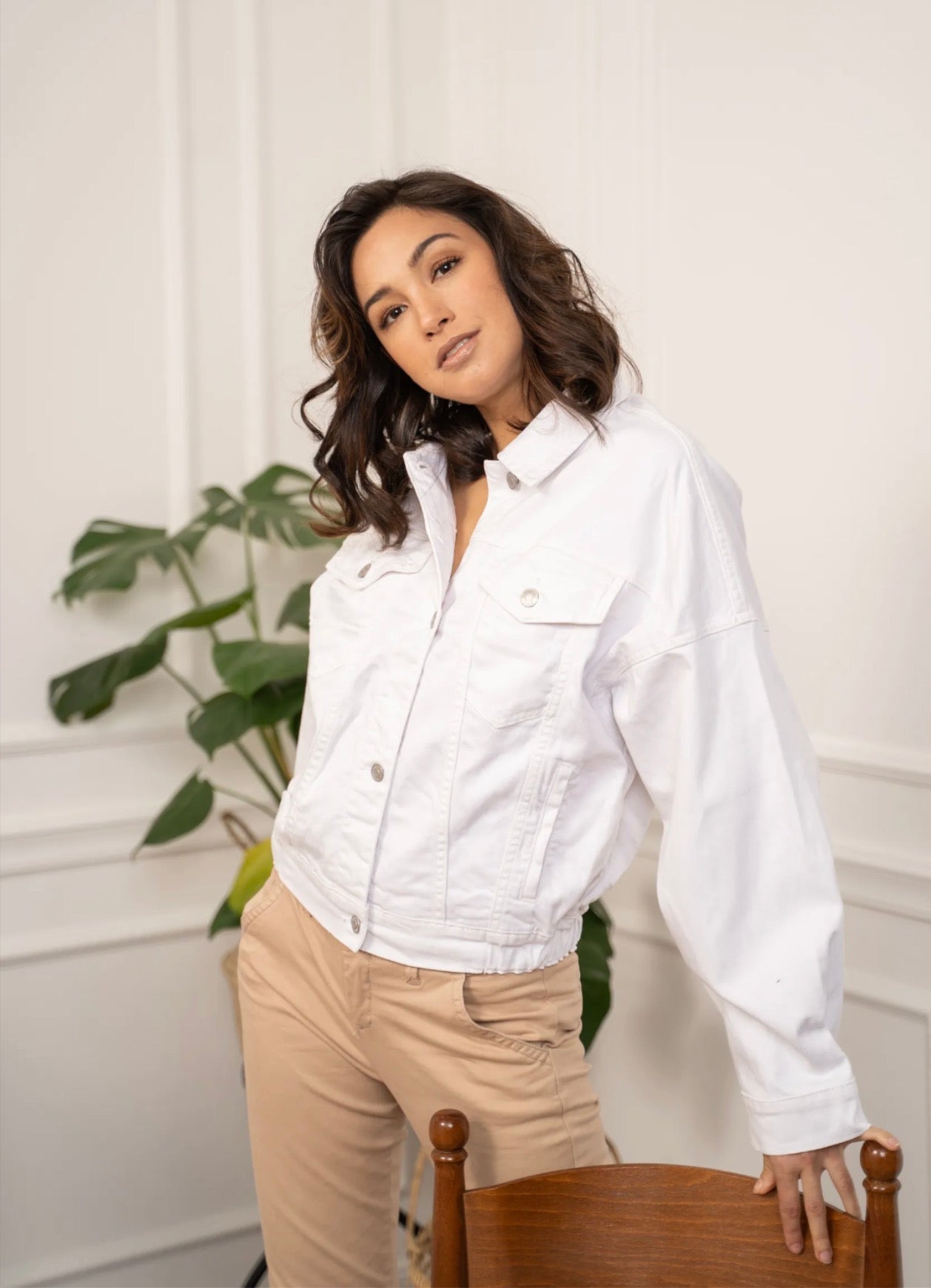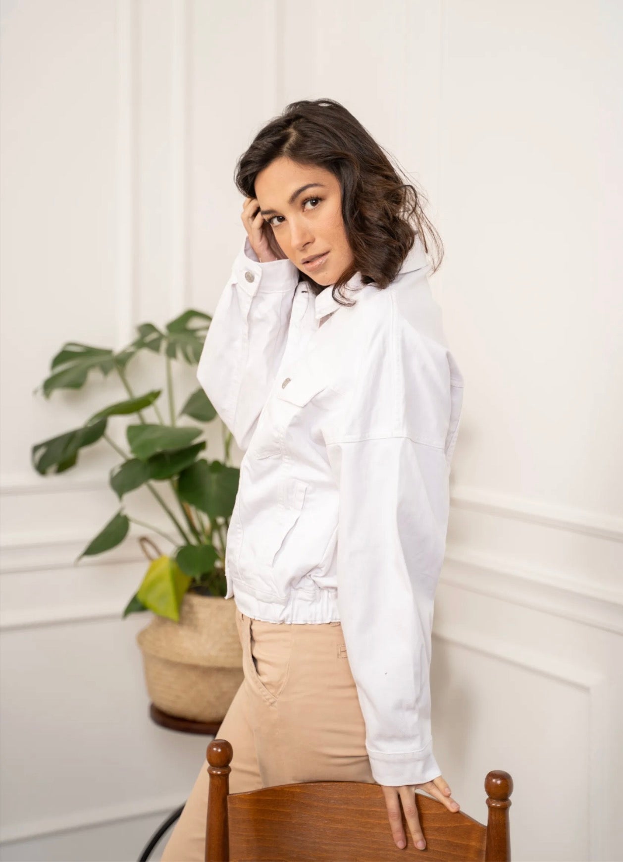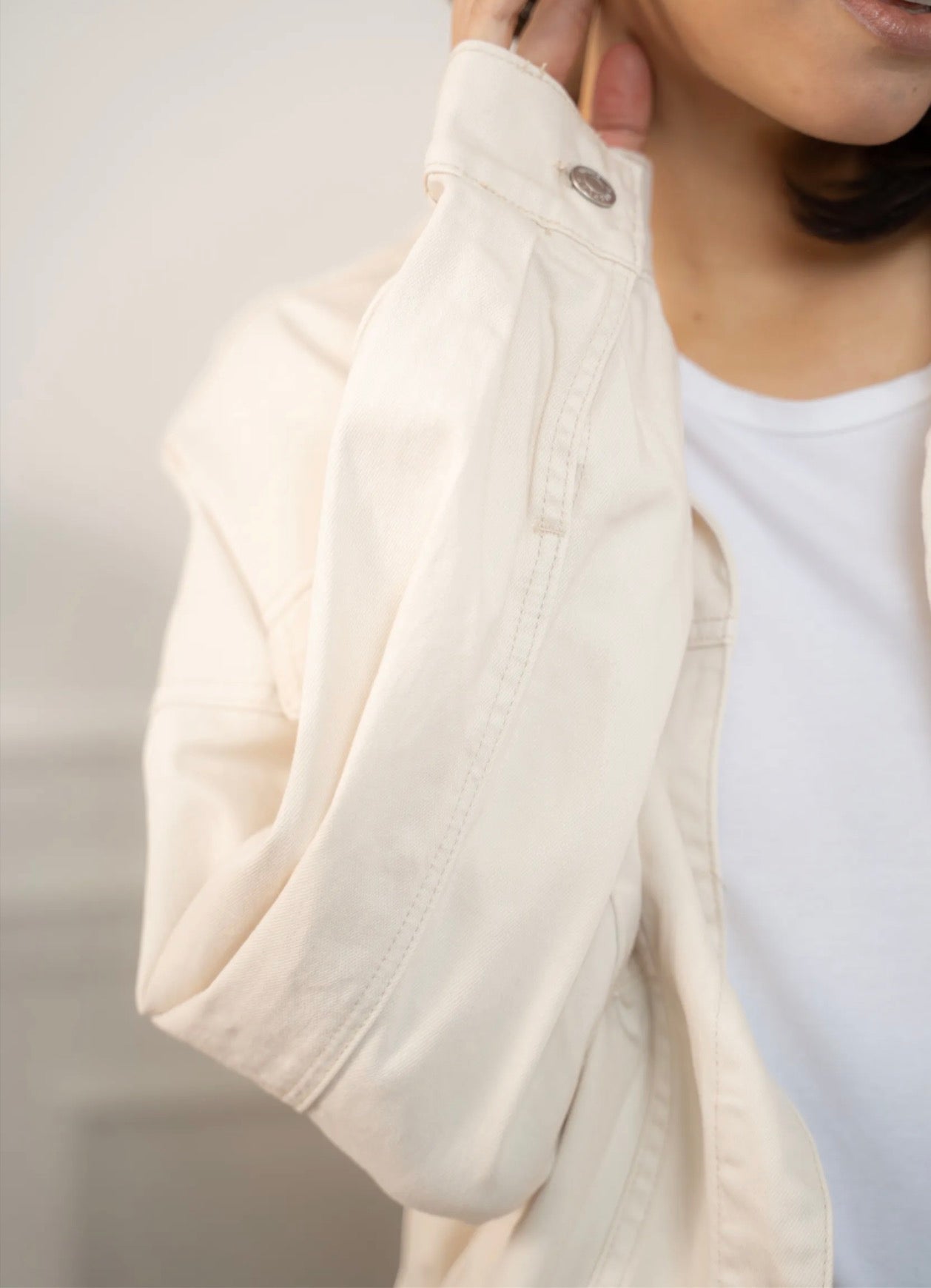Une veste en jean intemporelle revisitée dans une coupe ample et confortable. Confectionnée en 100% coton, elle offre une tenue naturelle, respirante et agréable au quotidien. Son design structuré avec poches poitrine, coutures signature et boutons métalliques lui donne un style authentique, facile à porter toute l’année.
