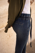 Stretch cotton paperbag pants for a trendy and comfortable look. Their gathered waistband accentuates the silhouette while their slim, tapered cut elongates the leg. A revisited basic for everyday wear.