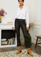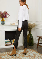 Un pantalon enduit noir chic et moderne, pensé pour sublimer la silhouette tout en apportant une touche rock très actuelle. Sa matière enduite effet cuir offre un rendu lisse et légèrement brillant, parfait pour des looks habillés comme plus décontractés. La coupe droite ajustée épouse les formes sans comprimer, et l’ouverture zippée discrète au bas de jambe ajoute une allure tendance et élégante.
