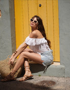Washed light blue denim shorts for a casual, summery look full of character. Their straight cut, high waist, and frayed edges add a cool, feminine style.