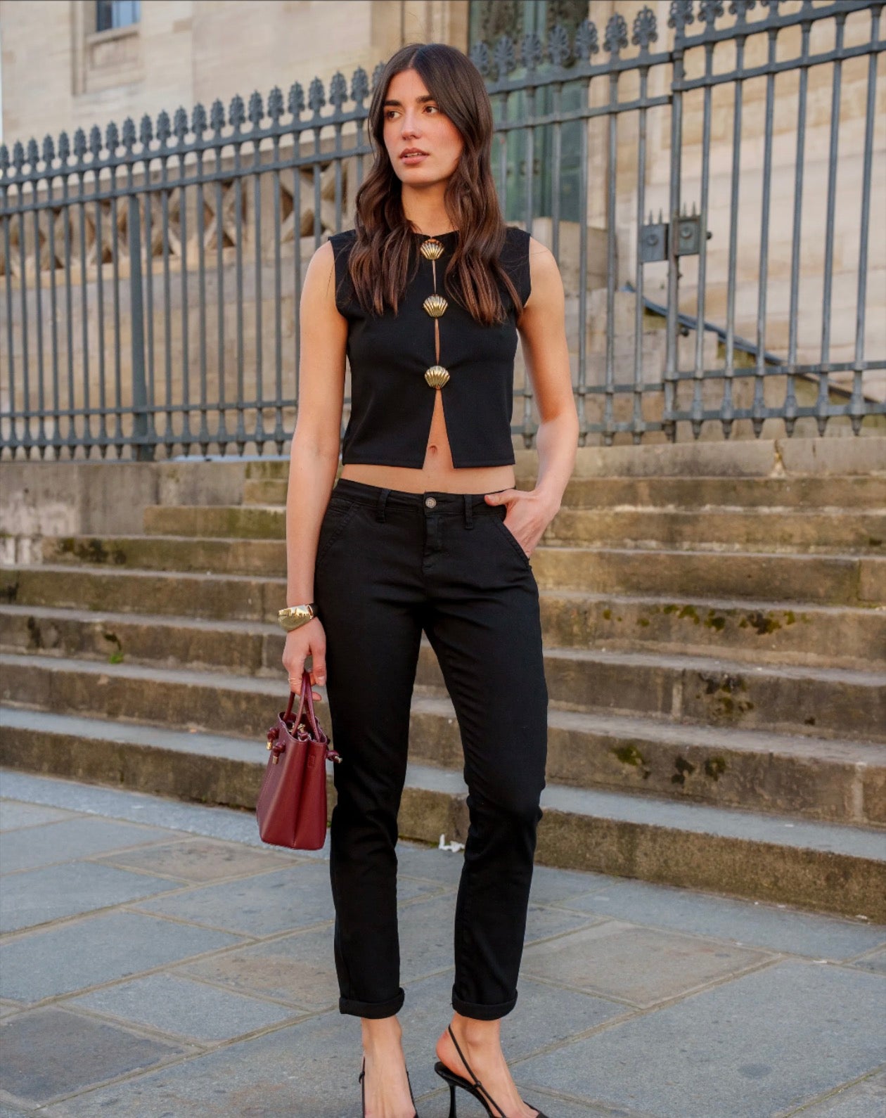 Cotton or lightweight canvas pants, with a straight or slightly carrot cut. A chic alternative to classic jeans, perfect for casual or professional looks. | Casual chic |